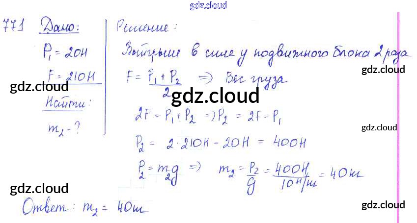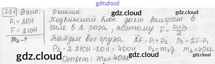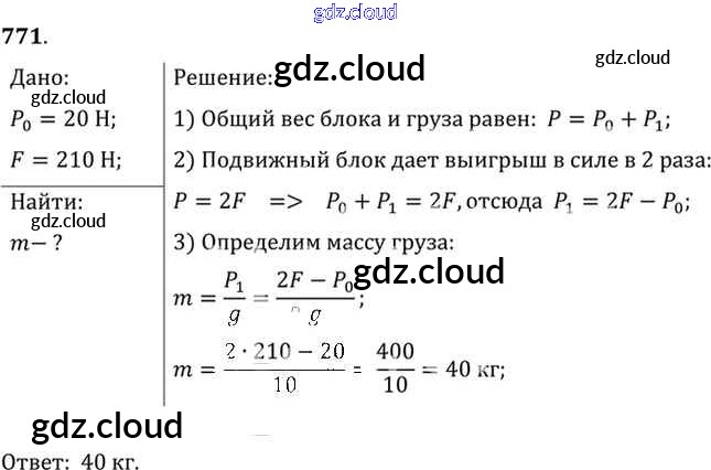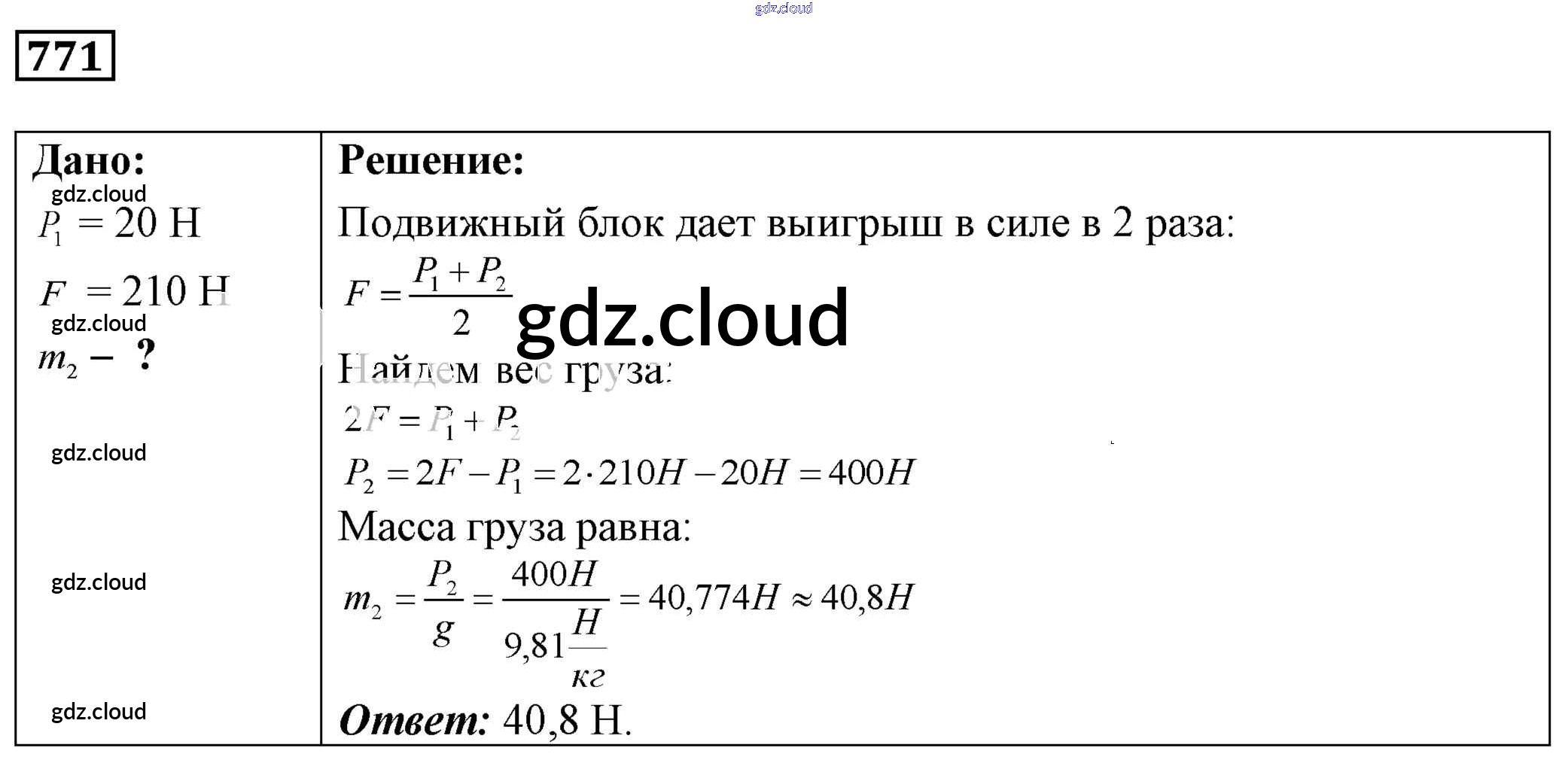 Ответ на задание 771 Сборник задач Физика за 7, 8, 9 (седьмой, восьмой, девятый) класс Лукашик, Иванова 2011