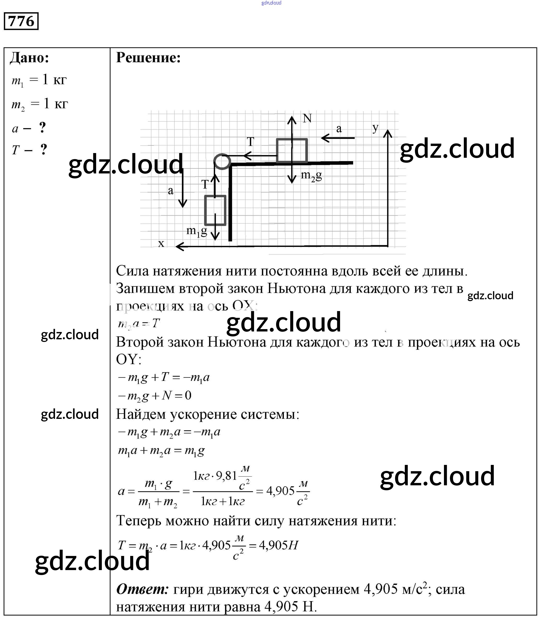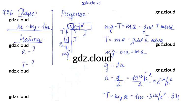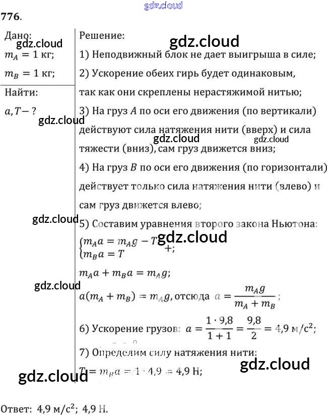 Ответ на задание 776 Сборник задач Физика за 7, 8, 9 (седьмой, восьмой, девятый) класс Лукашик, Иванова 2011