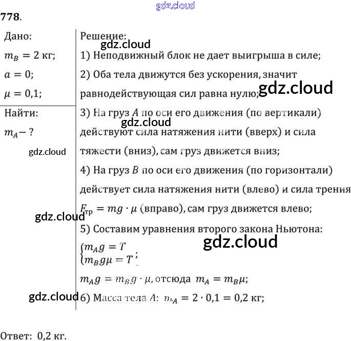 Ответ на задание 778 Сборник задач Физика за 7, 8, 9 (седьмой, восьмой, девятый) класс Лукашик, Иванова 2011