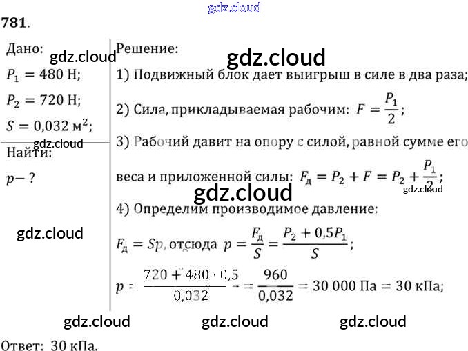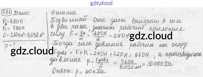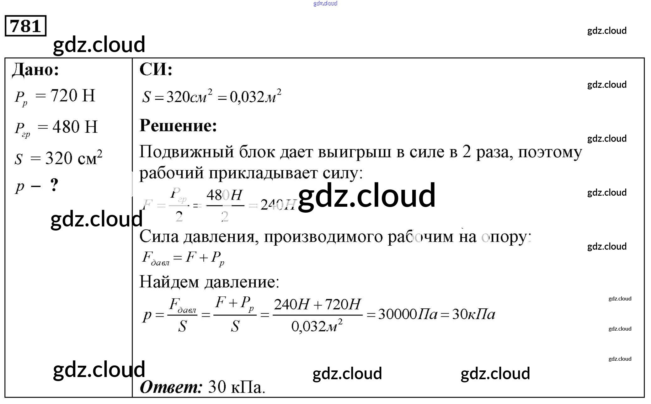 Ответ на задание 781 Сборник задач Физика за 7, 8, 9 (седьмой, восьмой, девятый) класс Лукашик, Иванова 2011
