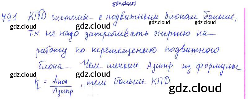 Ответ на задание 791 Сборник задач Физика за 7, 8, 9 (седьмой, восьмой, девятый) класс Лукашик, Иванова 2011