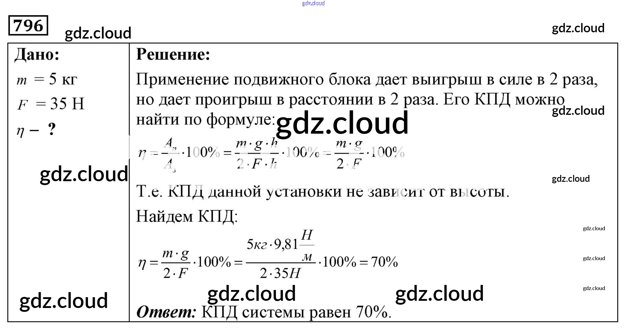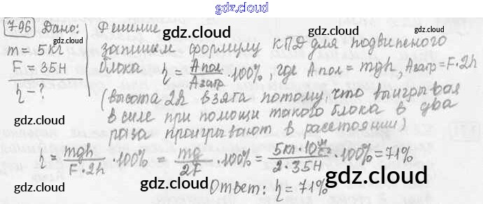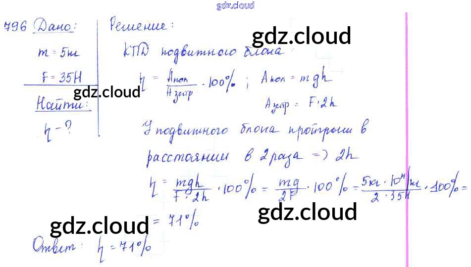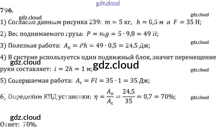 Ответ на задание 796 Сборник задач Физика за 7, 8, 9 (седьмой, восьмой, девятый) класс Лукашик, Иванова 2011