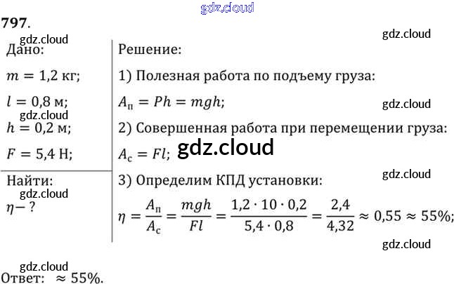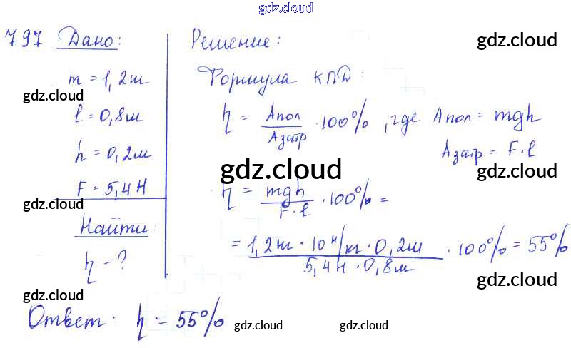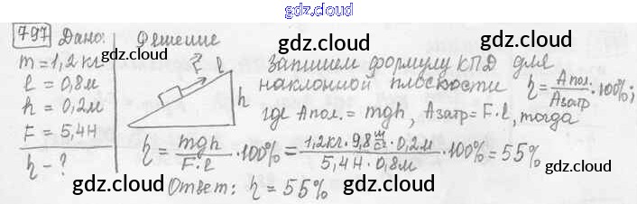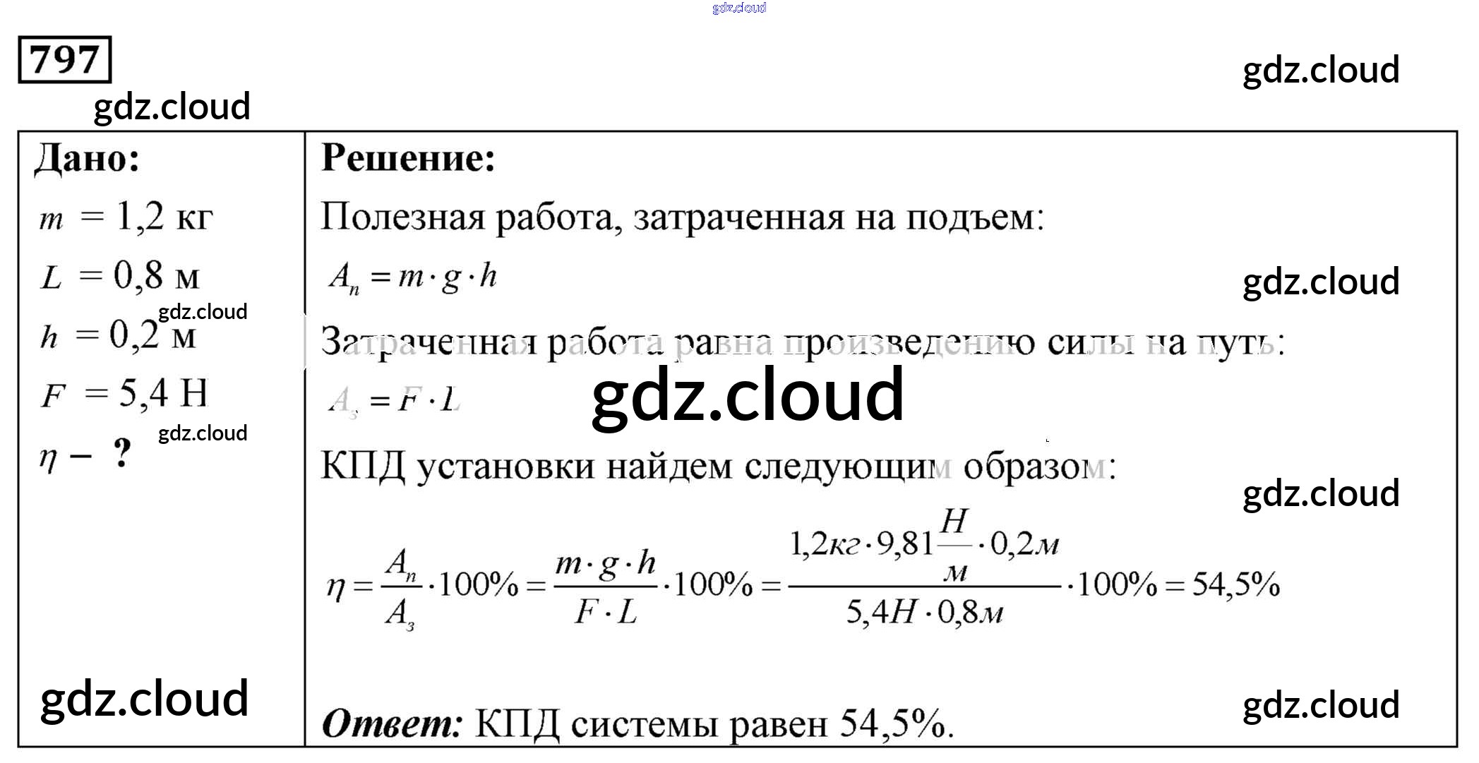 Ответ на задание 797 Сборник задач Физика за 7, 8, 9 (седьмой, восьмой, девятый) класс Лукашик, Иванова 2011