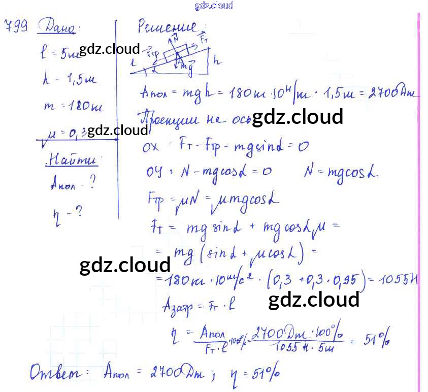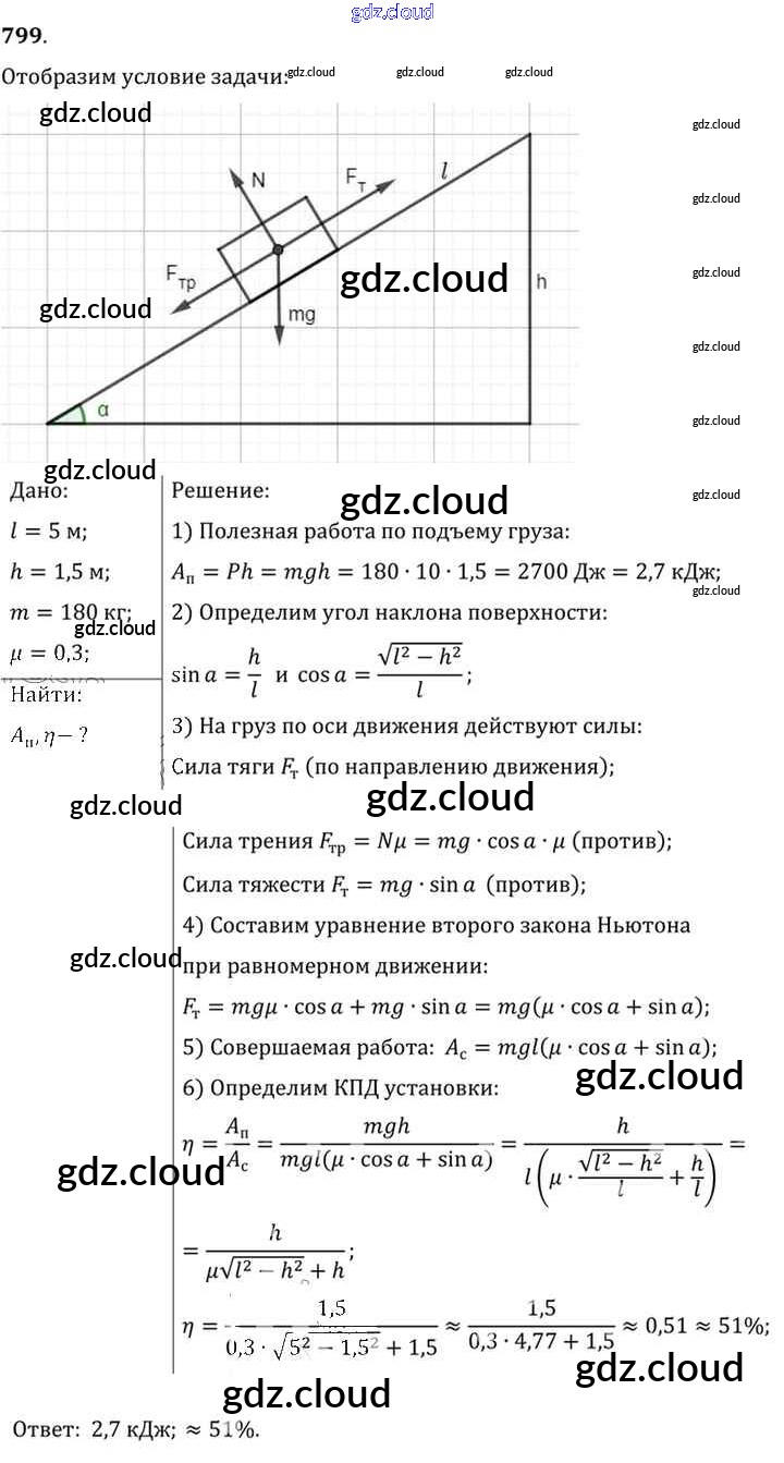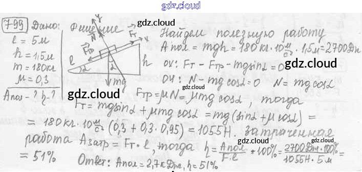 Ответ на задание 799 Сборник задач Физика за 7, 8, 9 (седьмой, восьмой, девятый) класс Лукашик, Иванова 2011