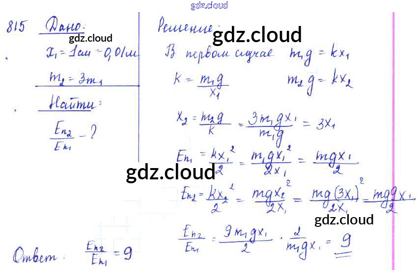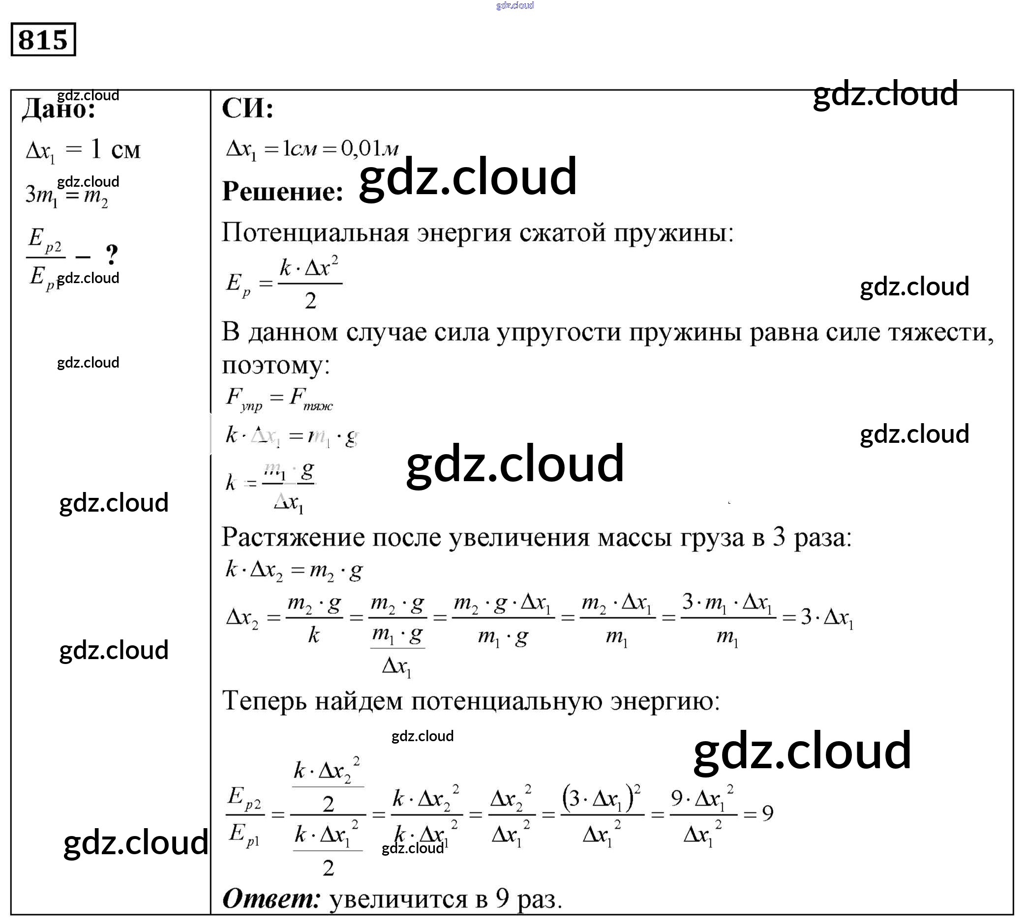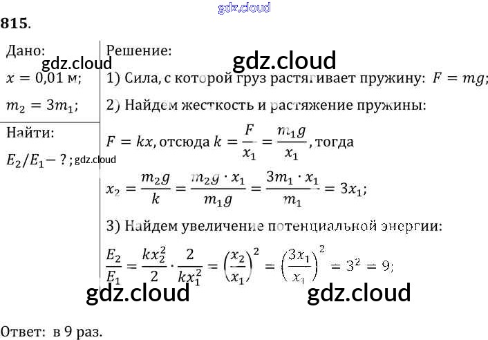 Ответ на задание 815 Сборник задач Физика за 7, 8, 9 (седьмой, восьмой, девятый) класс Лукашик, Иванова 2011
