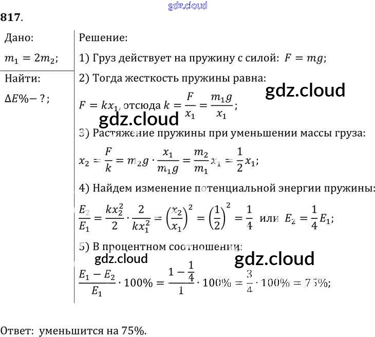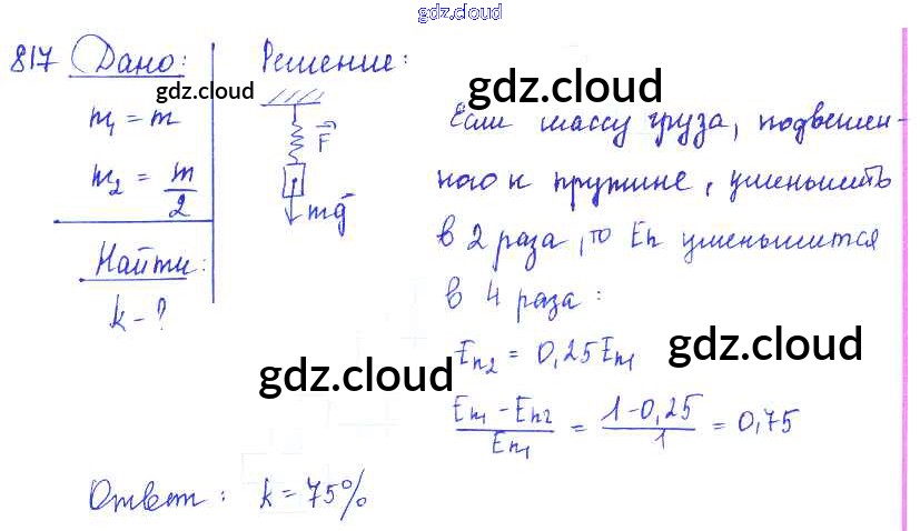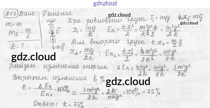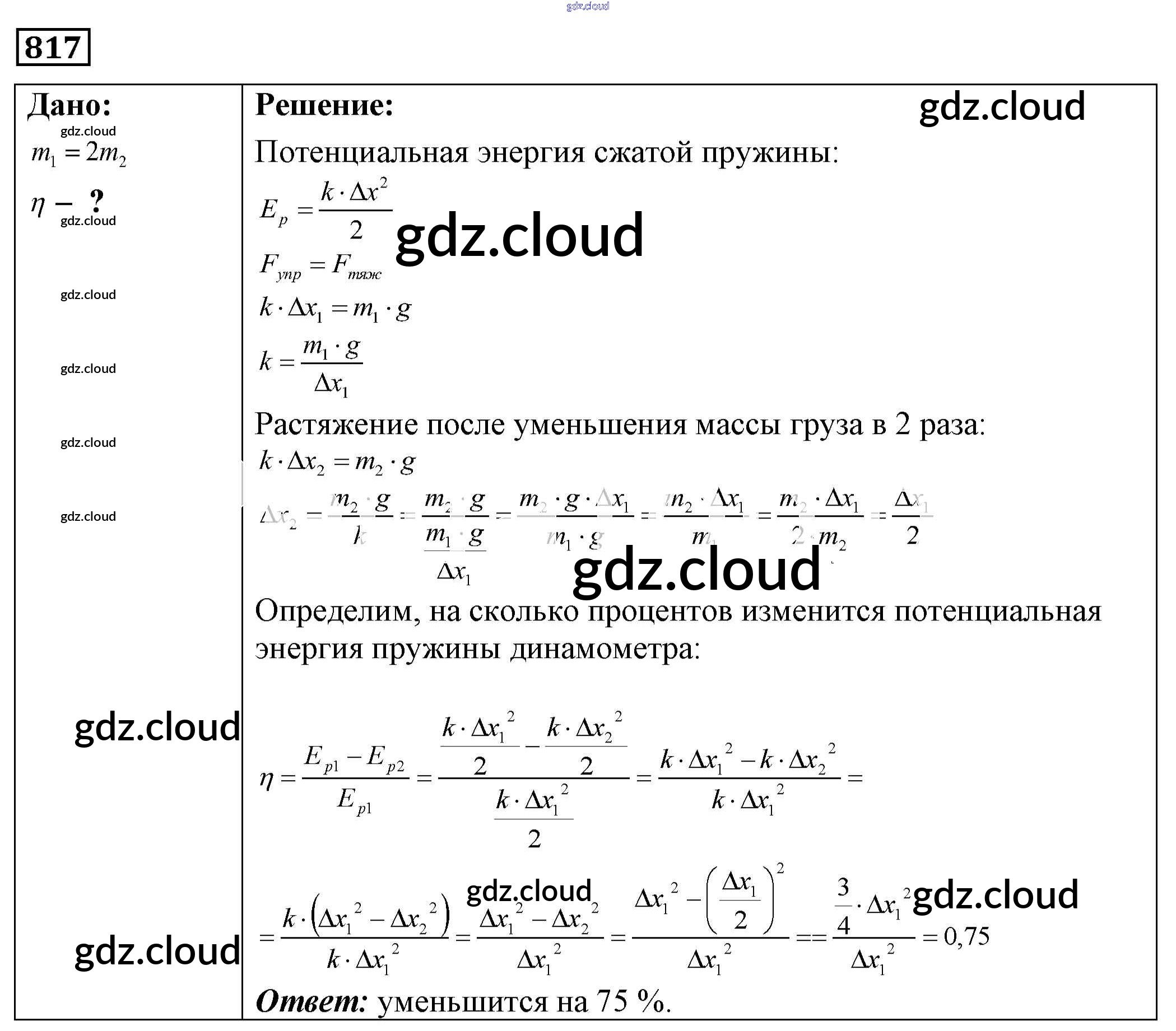 Ответ на задание 817 Сборник задач Физика за 7, 8, 9 (седьмой, восьмой, девятый) класс Лукашик, Иванова 2011