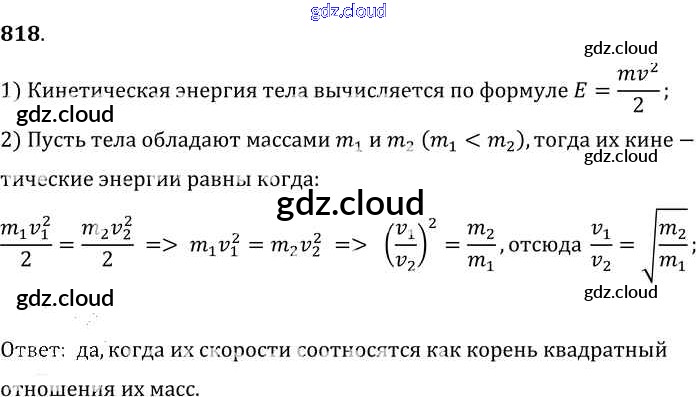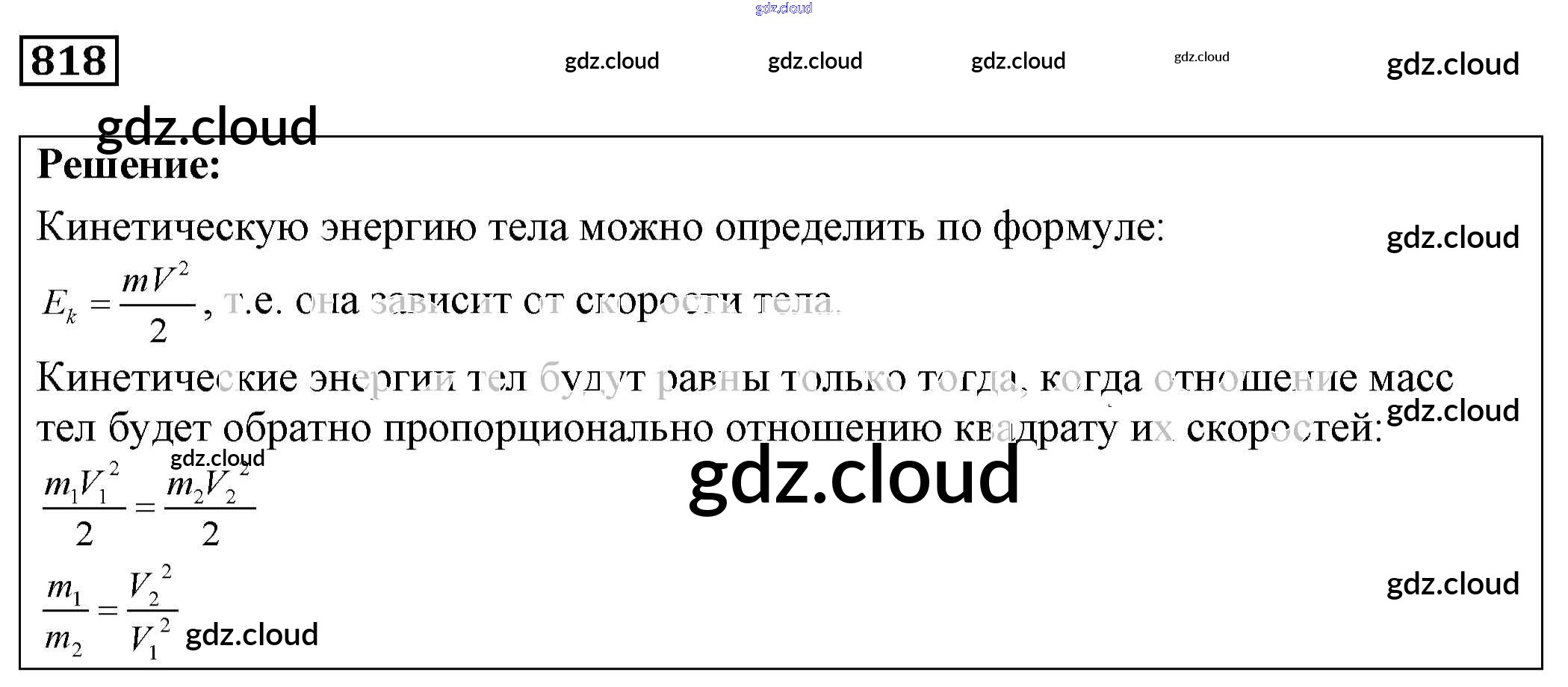 Ответ на задание 818 Сборник задач Физика за 7, 8, 9 (седьмой, восьмой, девятый) класс Лукашик, Иванова 2011
