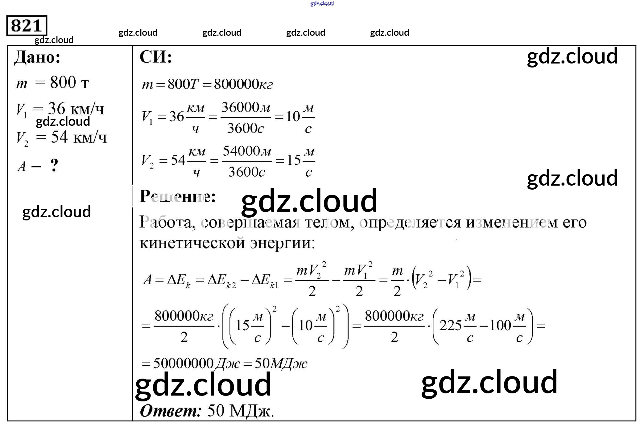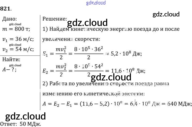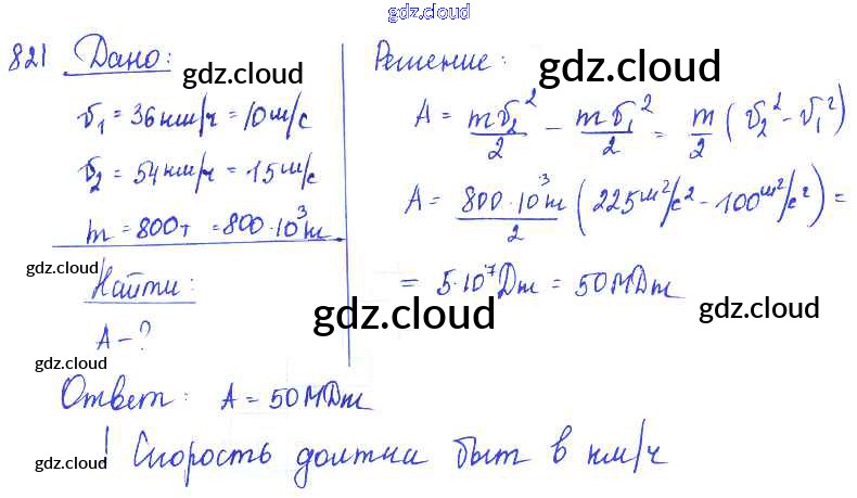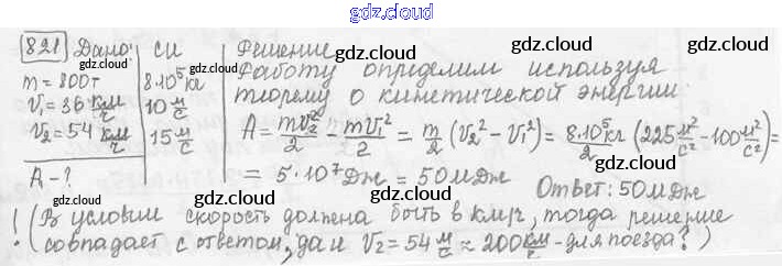 Ответ на задание 821 Сборник задач Физика за 7, 8, 9 (седьмой, восьмой, девятый) класс Лукашик, Иванова 2011