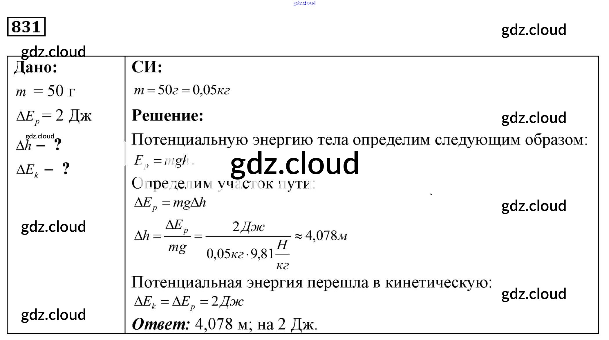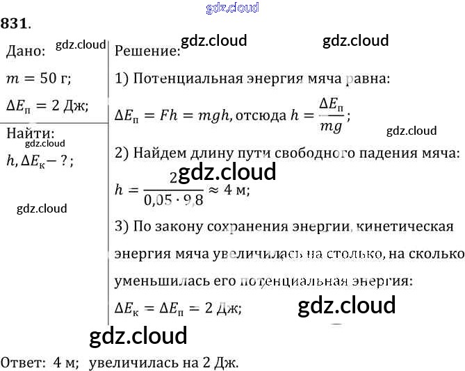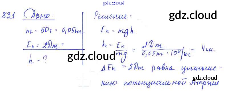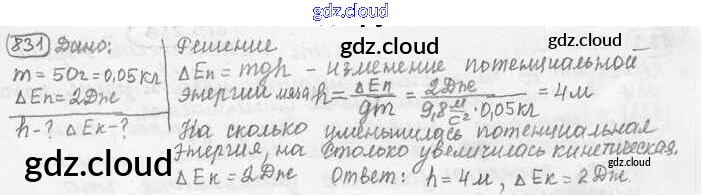 Ответ на задание 831 Сборник задач Физика за 7, 8, 9 (седьмой, восьмой, девятый) класс Лукашик, Иванова 2011