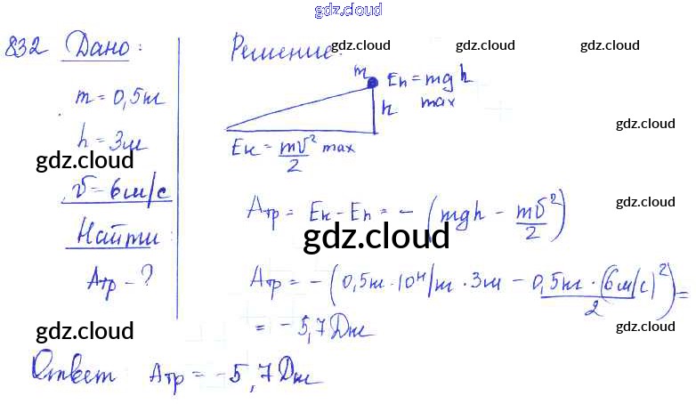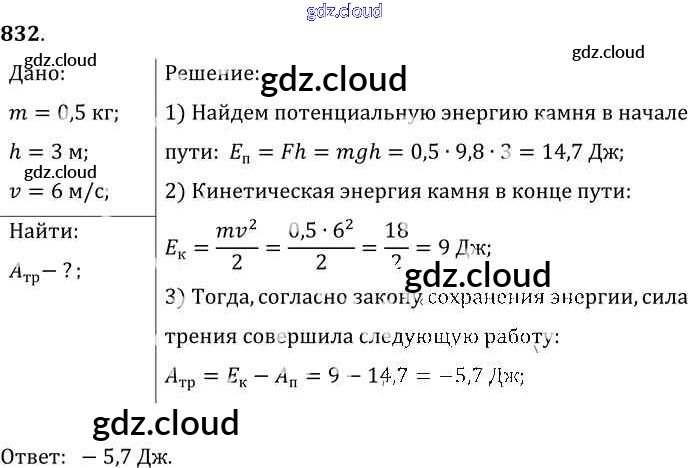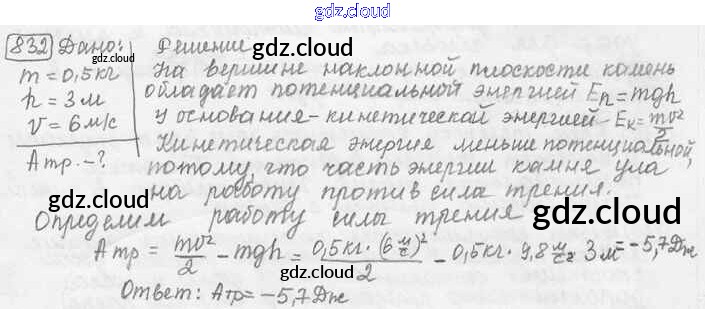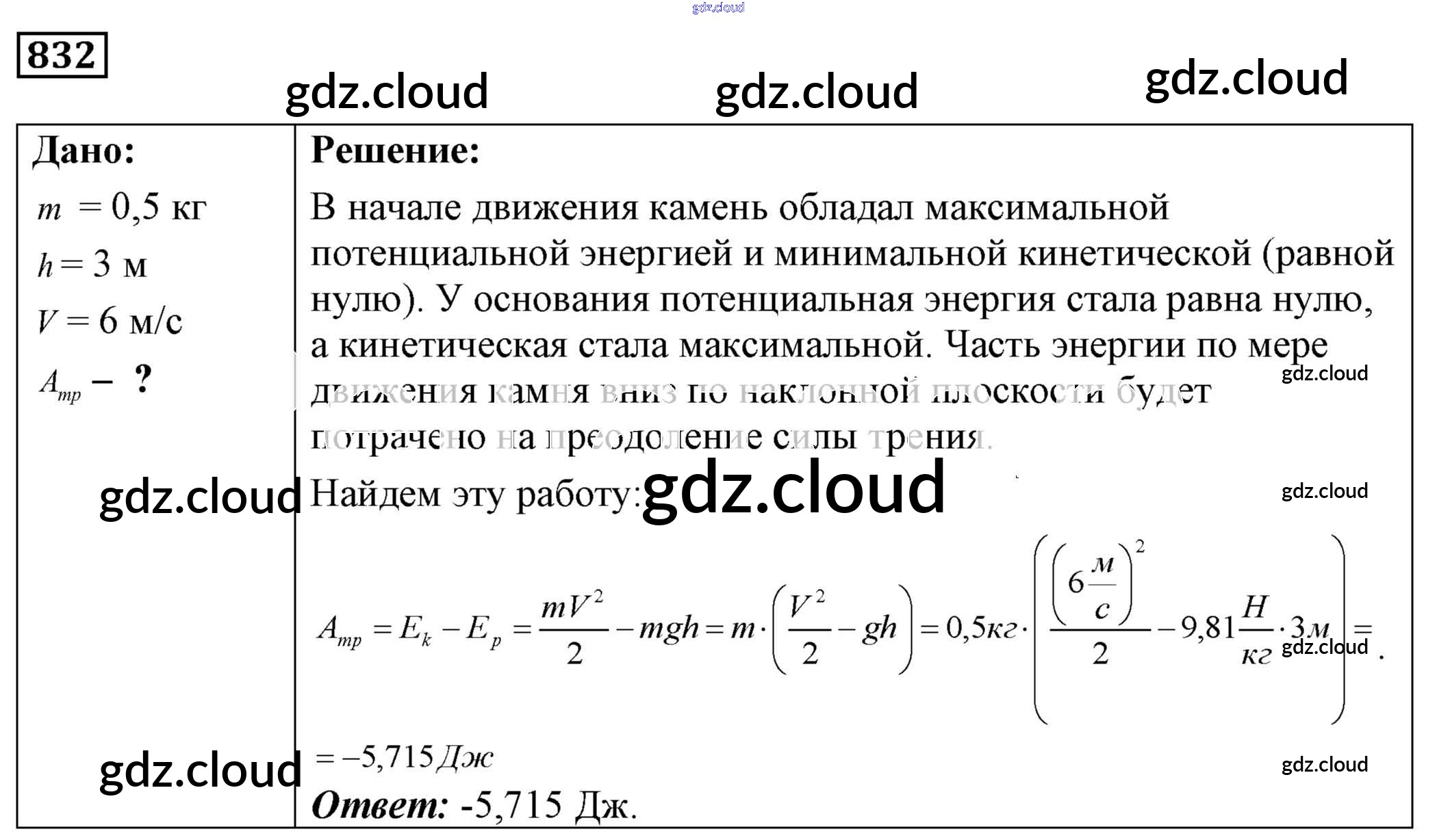 Ответ на задание 832 Сборник задач Физика за 7, 8, 9 (седьмой, восьмой, девятый) класс Лукашик, Иванова 2011