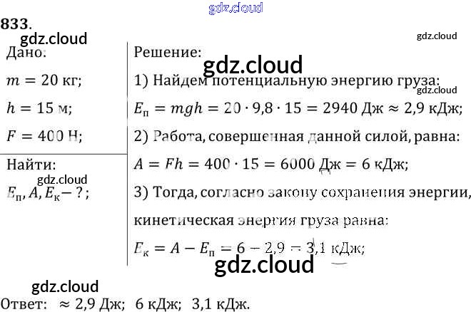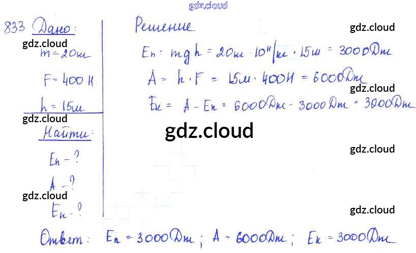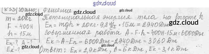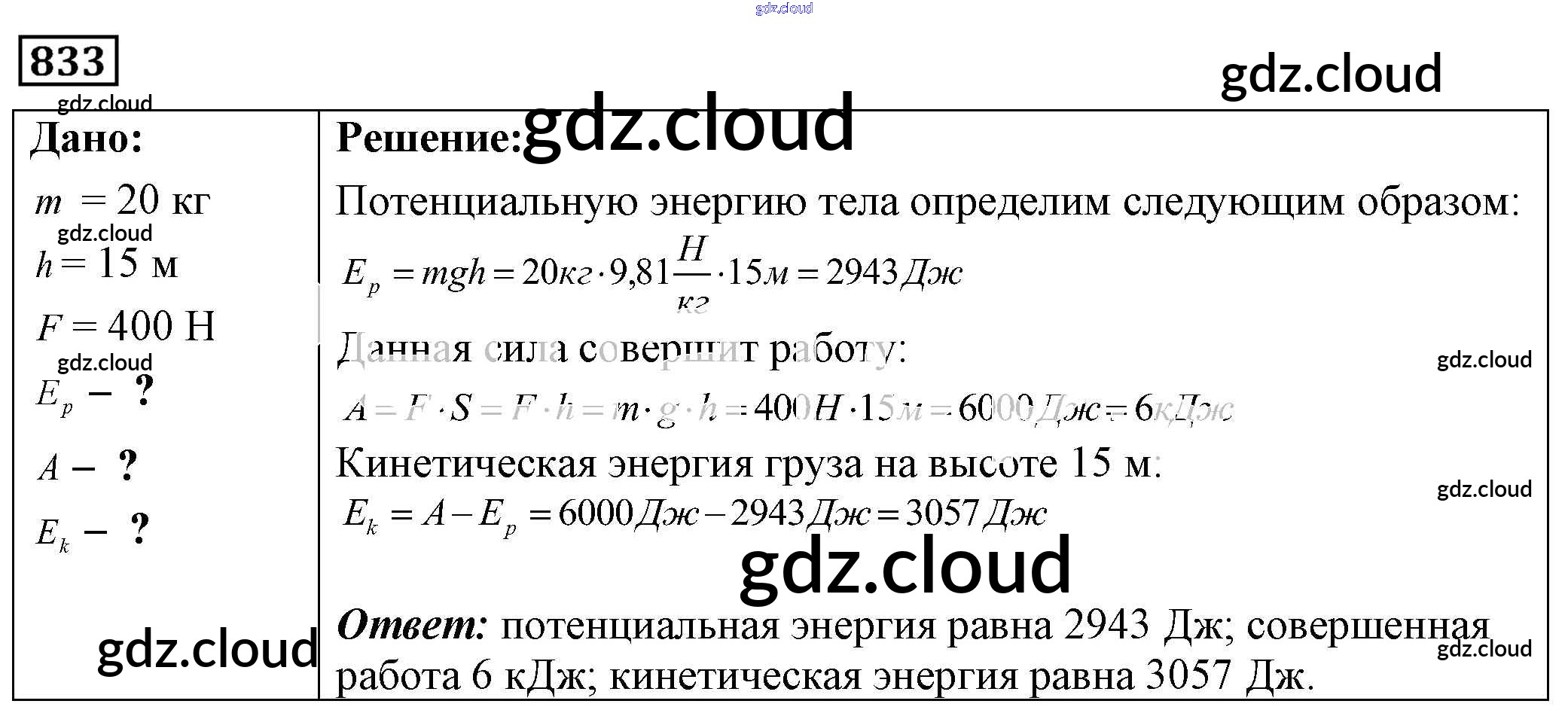 Ответ на задание 833 Сборник задач Физика за 7, 8, 9 (седьмой, восьмой, девятый) класс Лукашик, Иванова 2011