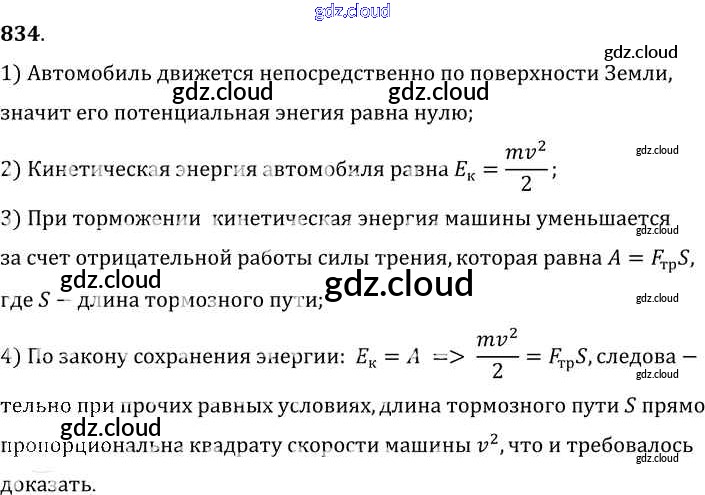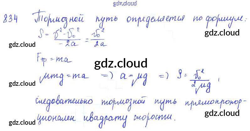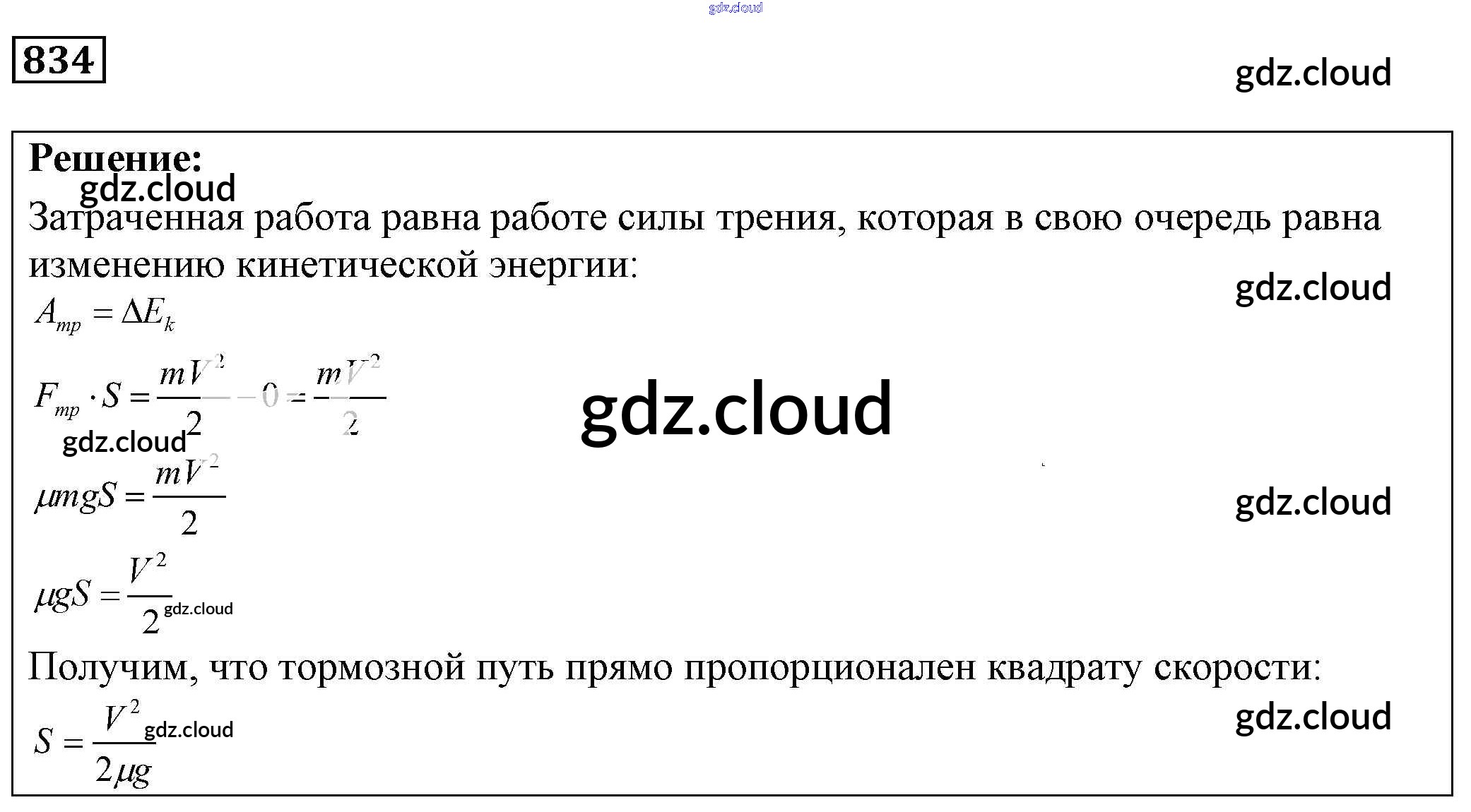 Ответ на задание 834 Сборник задач Физика за 7, 8, 9 (седьмой, восьмой, девятый) класс Лукашик, Иванова 2011