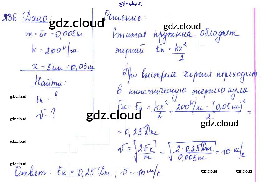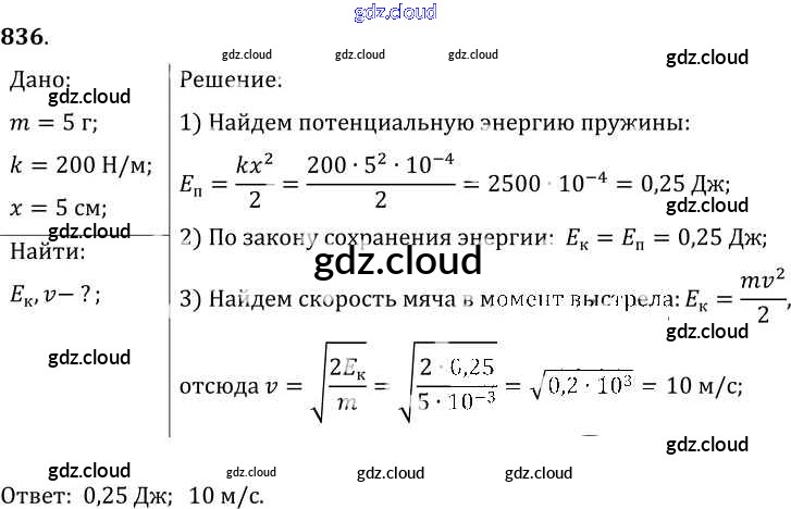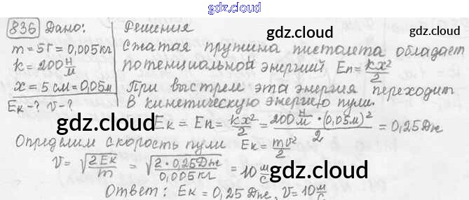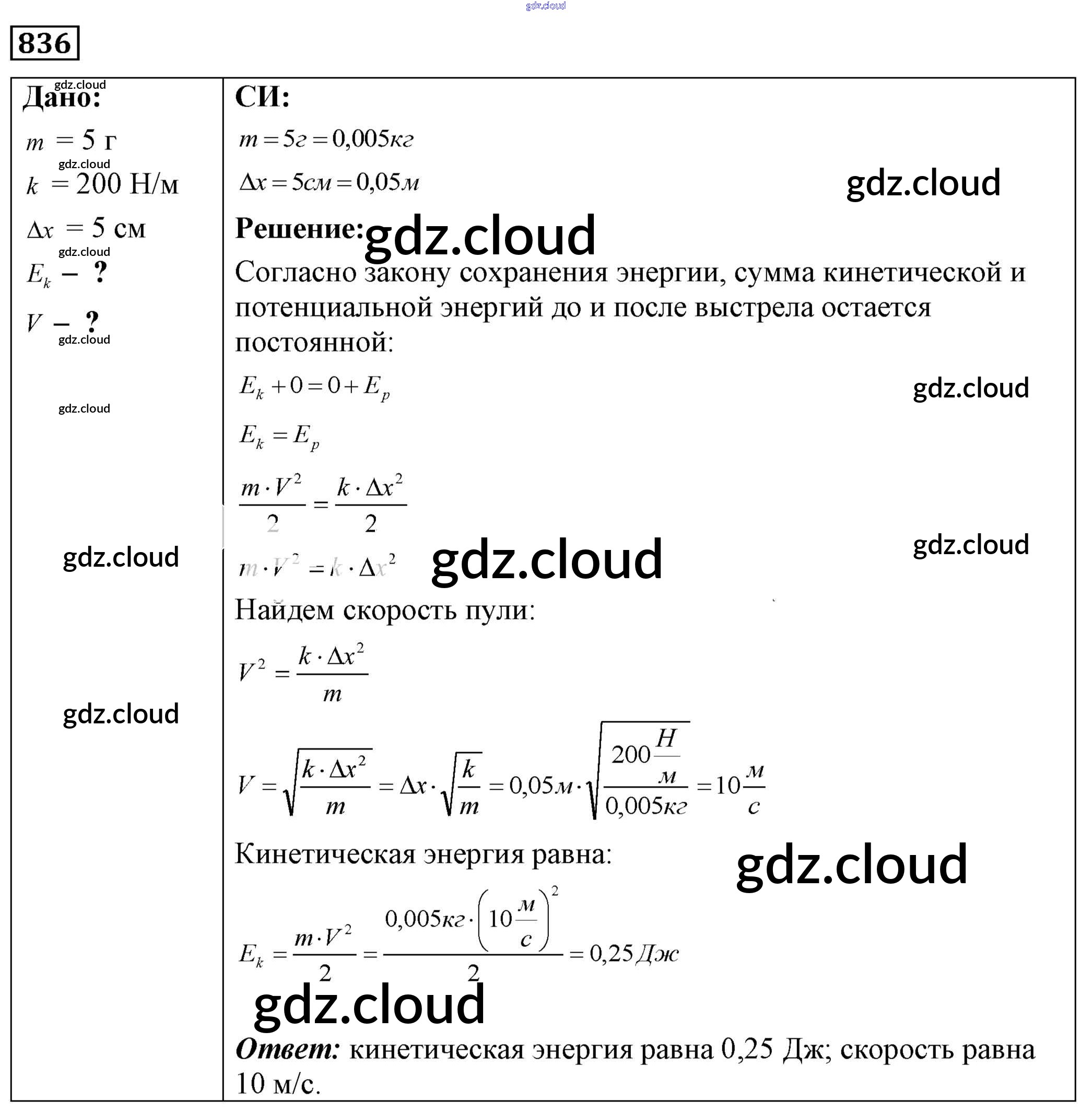 Ответ на задание 836 Сборник задач Физика за 7, 8, 9 (седьмой, восьмой, девятый) класс Лукашик, Иванова 2011