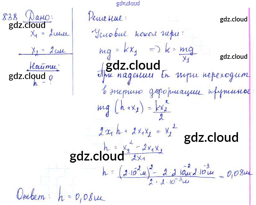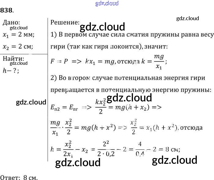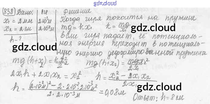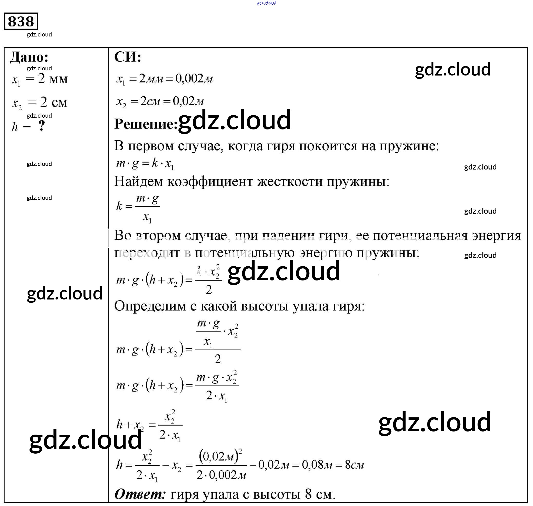 Ответ на задание 838 Сборник задач Физика за 7, 8, 9 (седьмой, восьмой, девятый) класс Лукашик, Иванова 2011