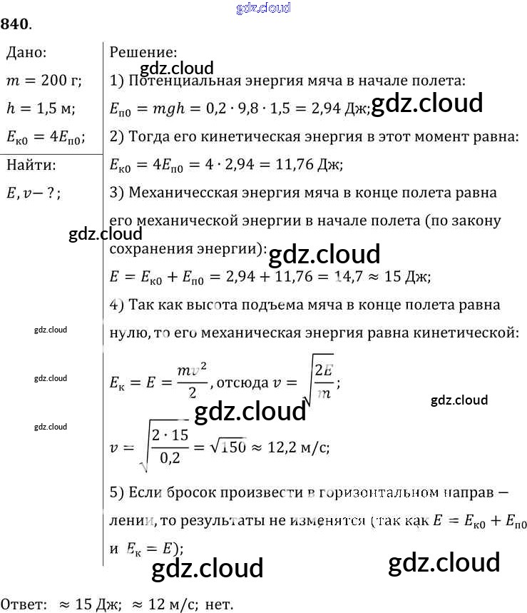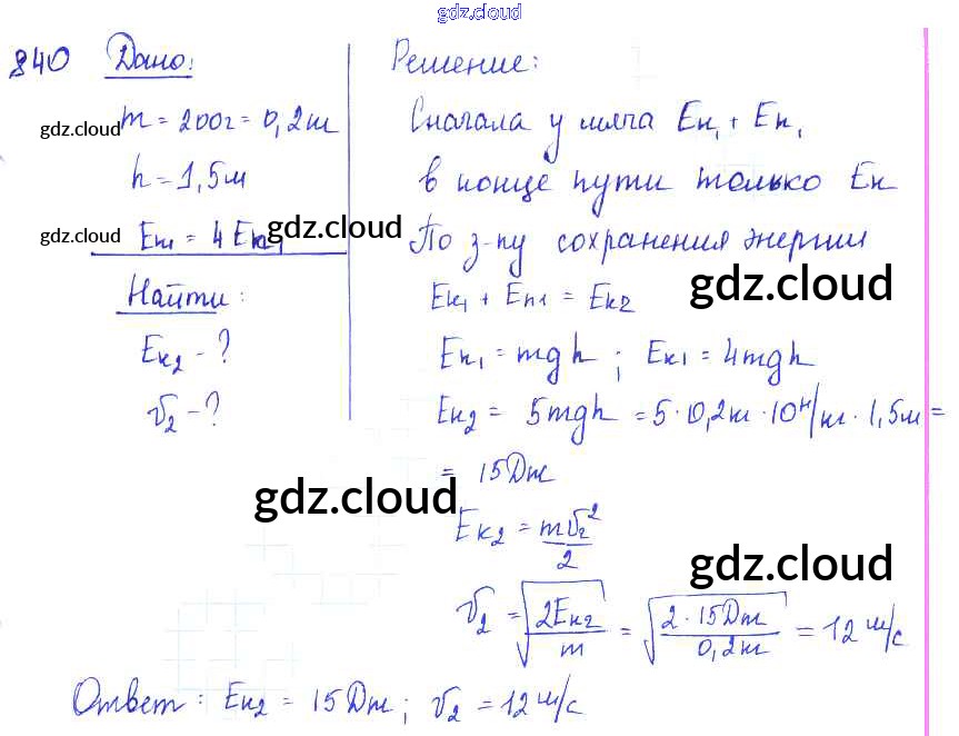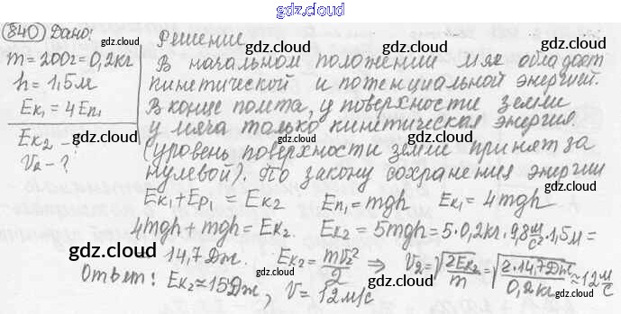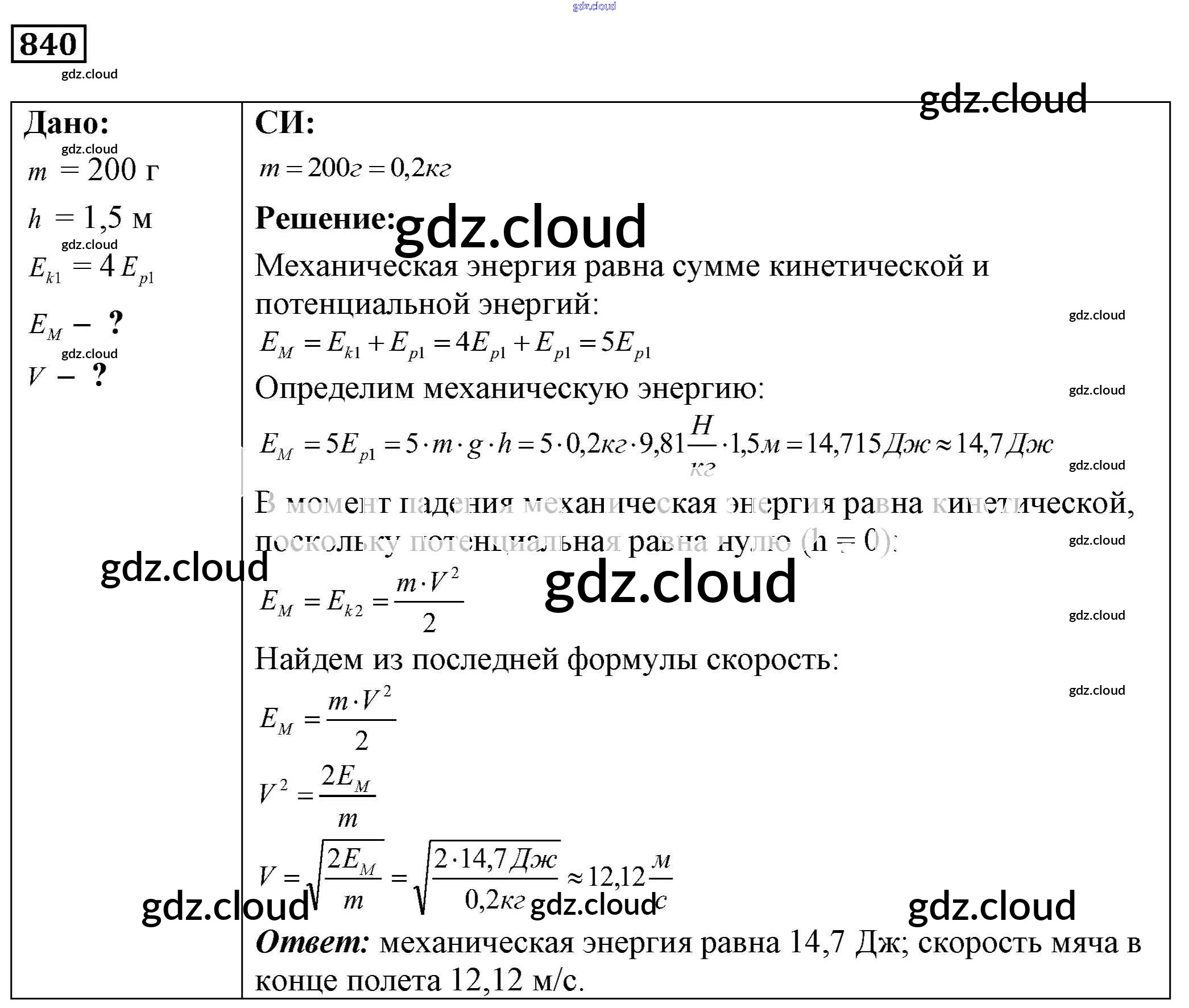 Ответ на задание 840 Сборник задач Физика за 7, 8, 9 (седьмой, восьмой, девятый) класс Лукашик, Иванова 2011