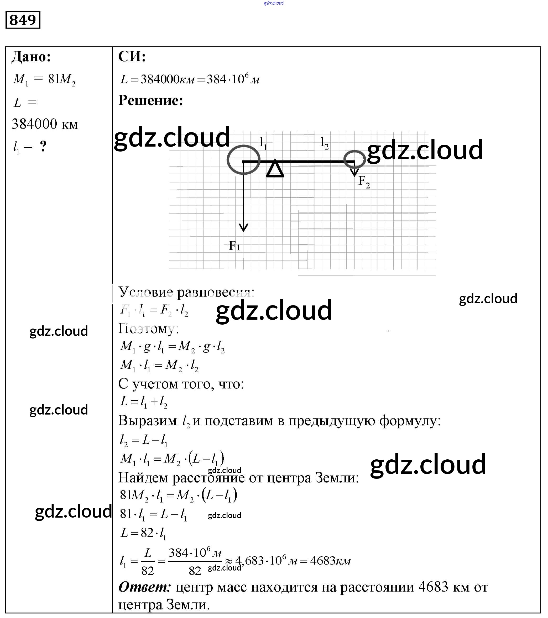 Ответ на задание 849 Сборник задач Физика за 7, 8, 9 (седьмой, восьмой, девятый) класс Лукашик, Иванова 2011