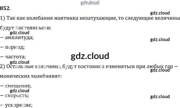 Ответ на задание 852 Сборник задач Физика за 7, 8, 9 (седьмой, восьмой, девятый) класс Лукашик, Иванова 2011