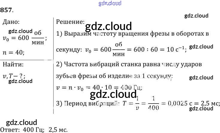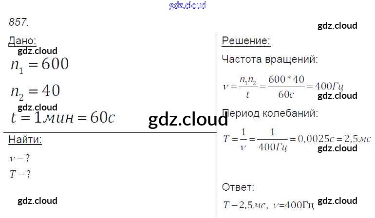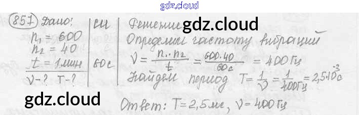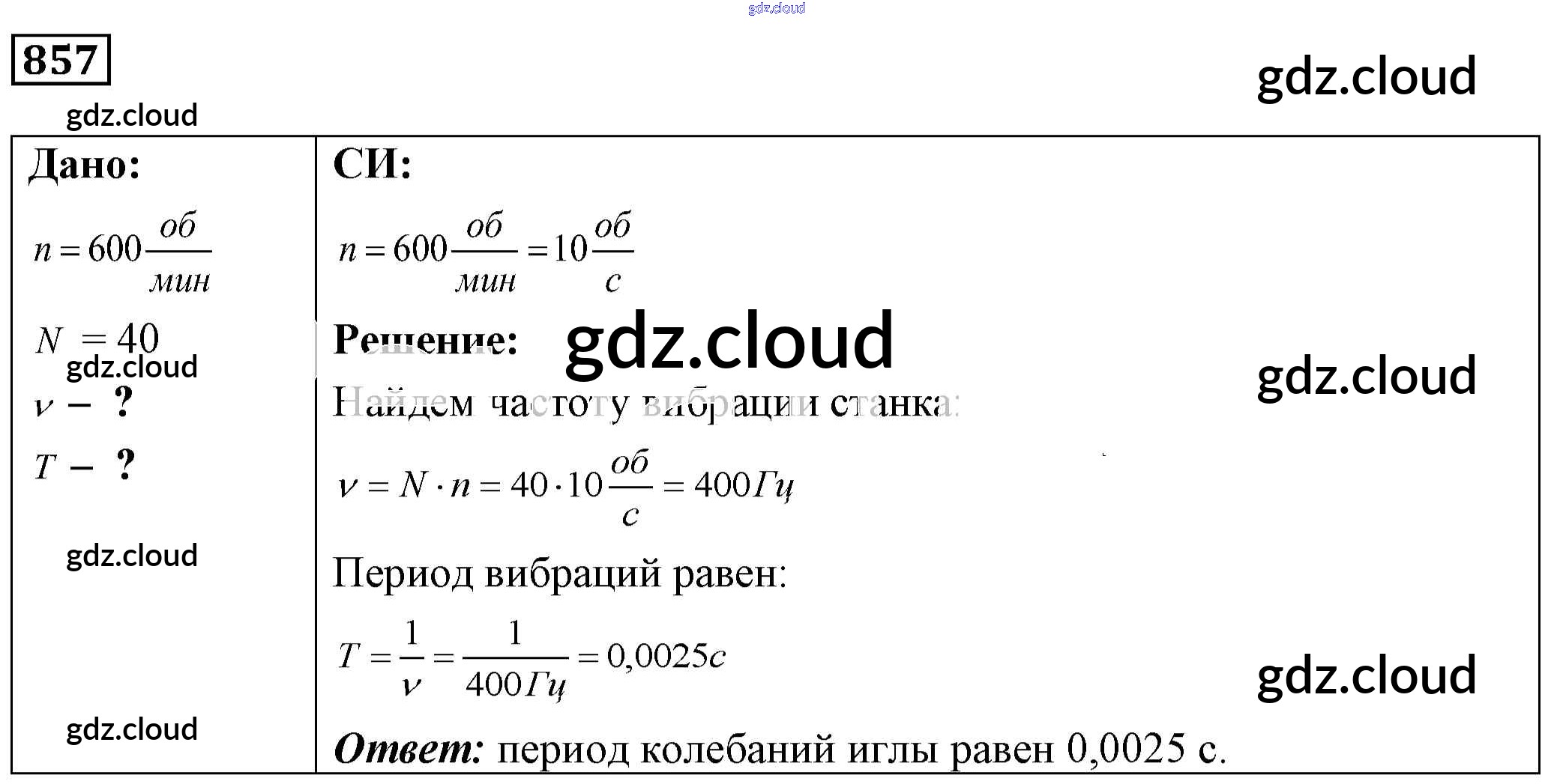 Ответ на задание 857 Сборник задач Физика за 7, 8, 9 (седьмой, восьмой, девятый) класс Лукашик, Иванова 2011