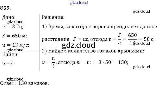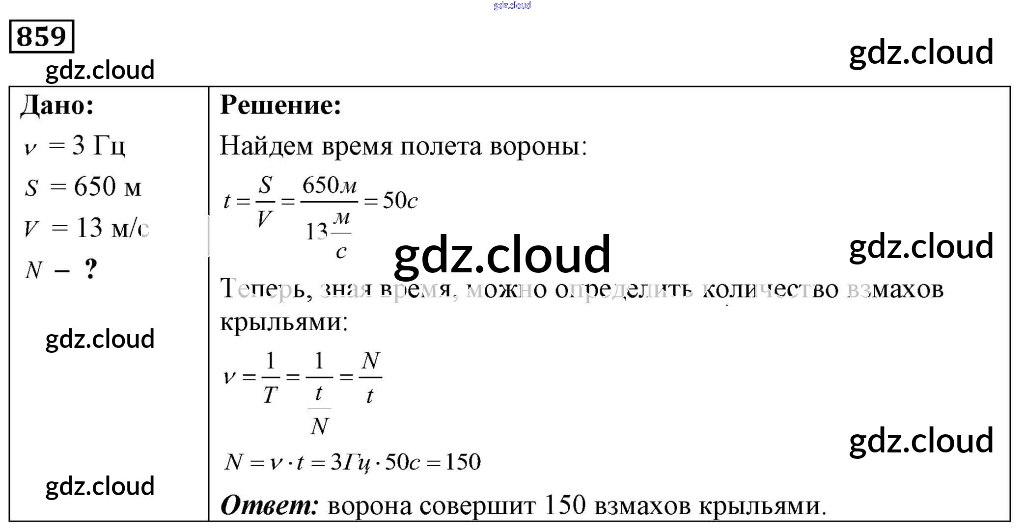 Ответ на задание 859 Сборник задач Физика за 7, 8, 9 (седьмой, восьмой, девятый) класс Лукашик, Иванова 2011