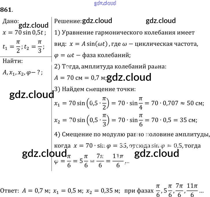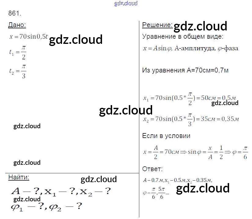 Ответ на задание 861 Сборник задач Физика за 7, 8, 9 (седьмой, восьмой, девятый) класс Лукашик, Иванова 2011