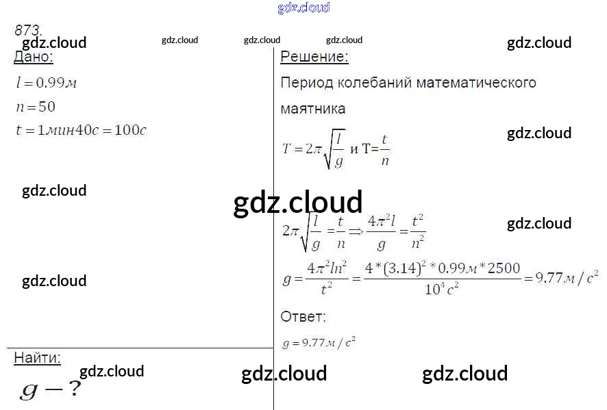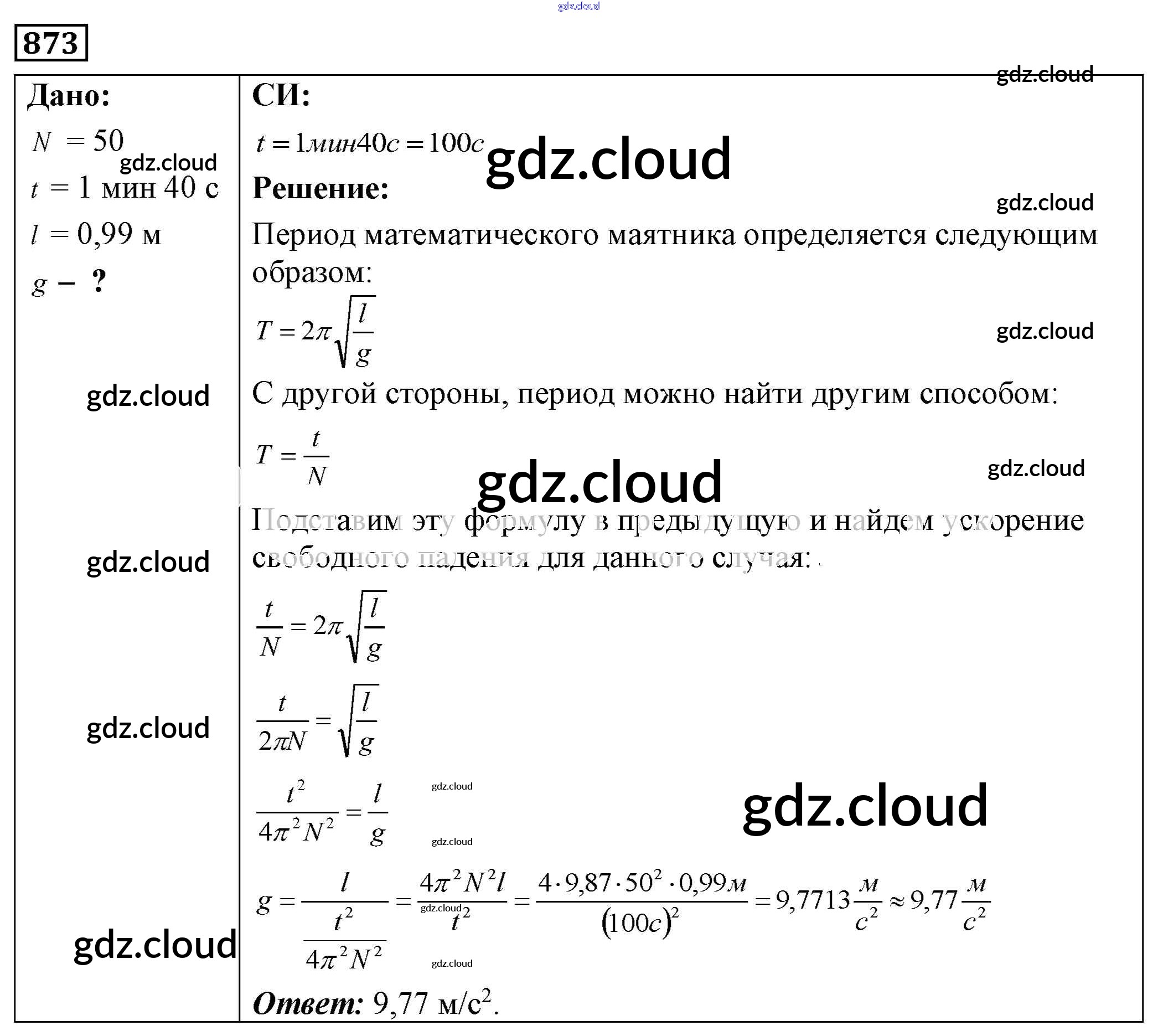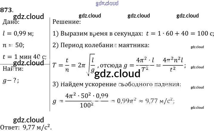Ответ на задание 873 Сборник задач Физика за 7, 8, 9 (седьмой, восьмой, девятый) класс Лукашик, Иванова 2011