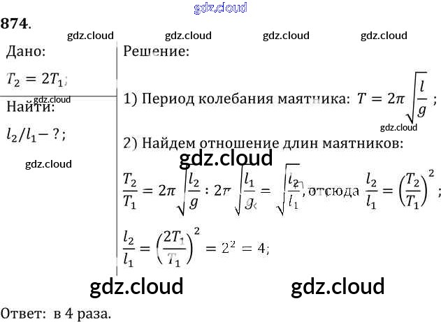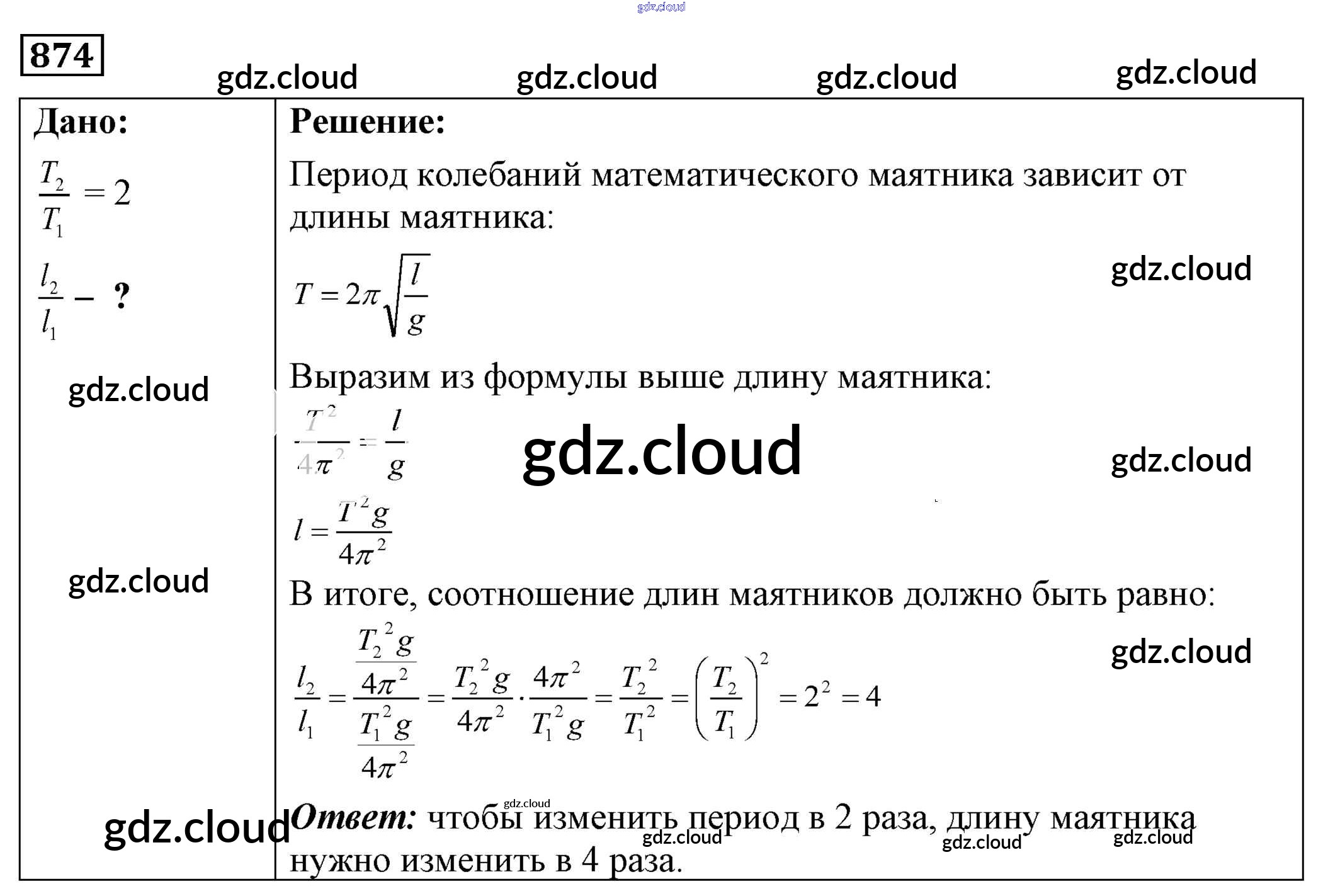 Ответ на задание 874 Сборник задач Физика за 7, 8, 9 (седьмой, восьмой, девятый) класс Лукашик, Иванова 2011
