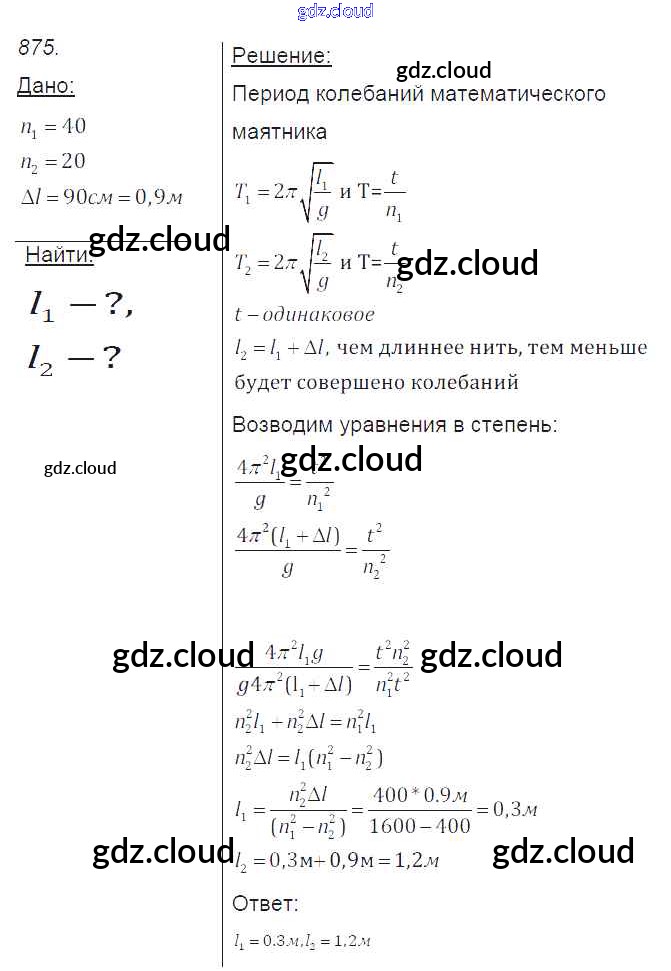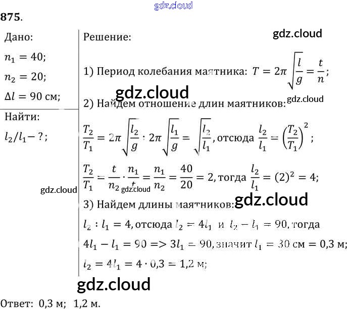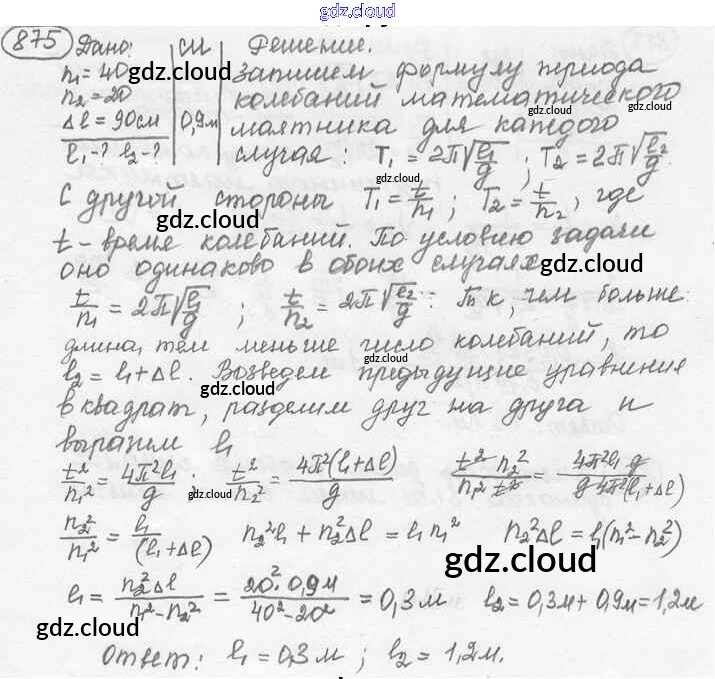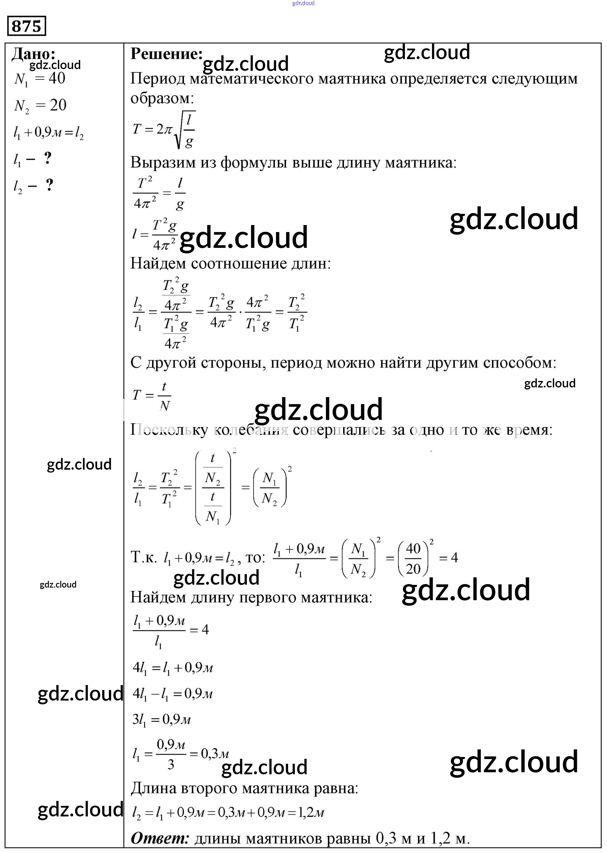 Ответ на задание 875 Сборник задач Физика за 7, 8, 9 (седьмой, восьмой, девятый) класс Лукашик, Иванова 2011