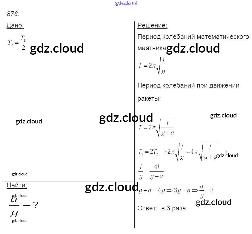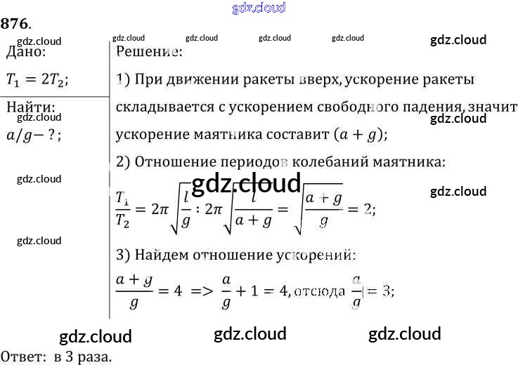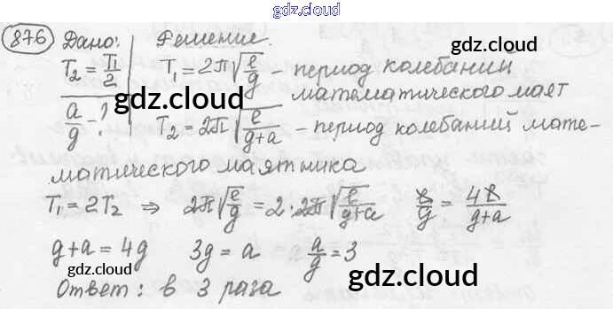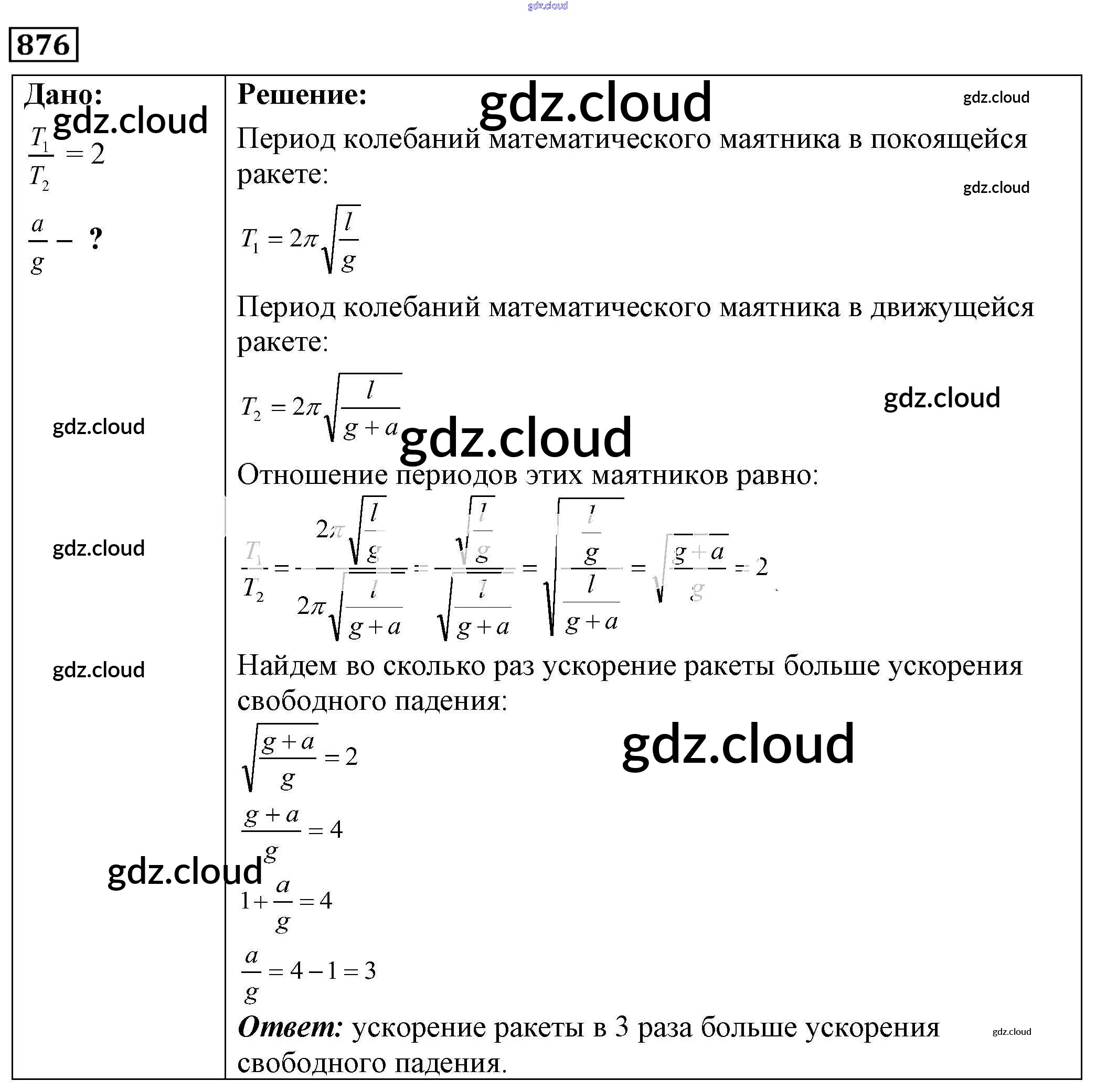 Ответ на задание 876 Сборник задач Физика за 7, 8, 9 (седьмой, восьмой, девятый) класс Лукашик, Иванова 2011