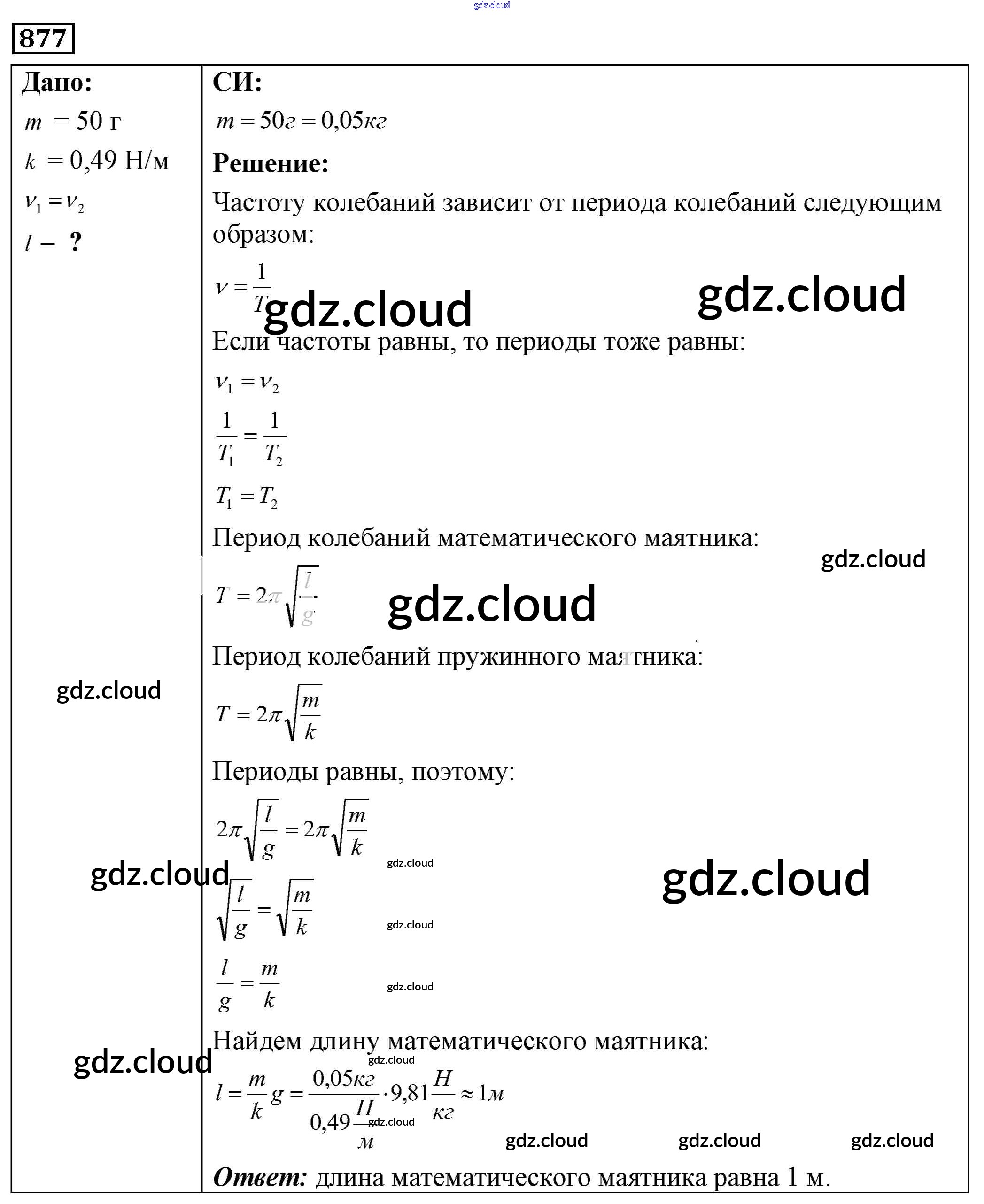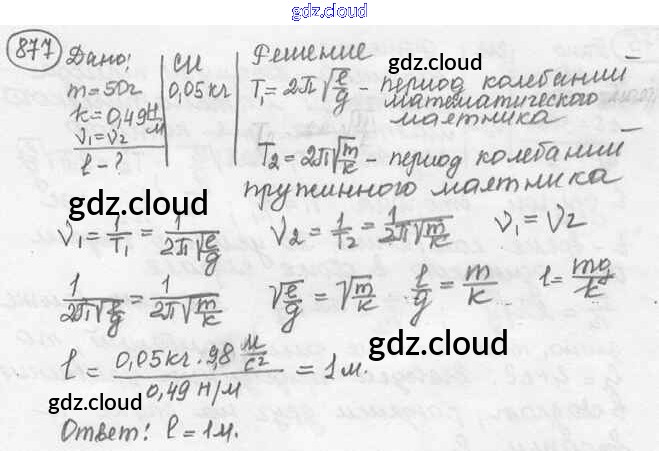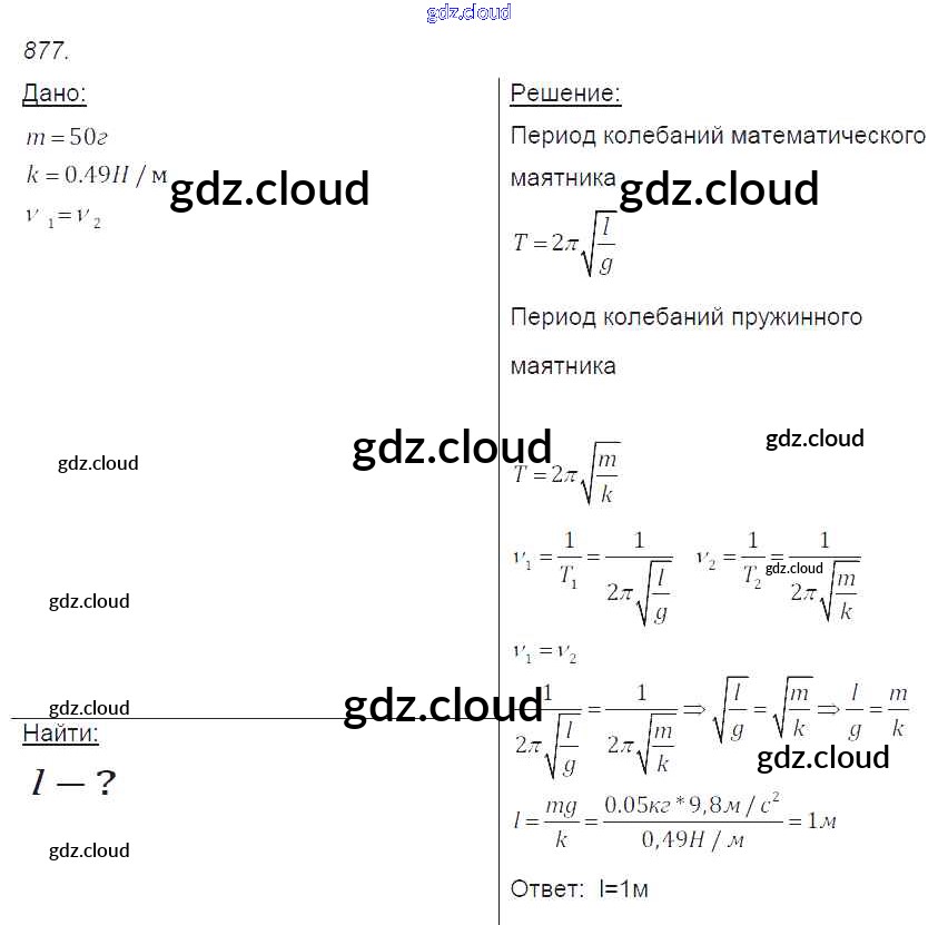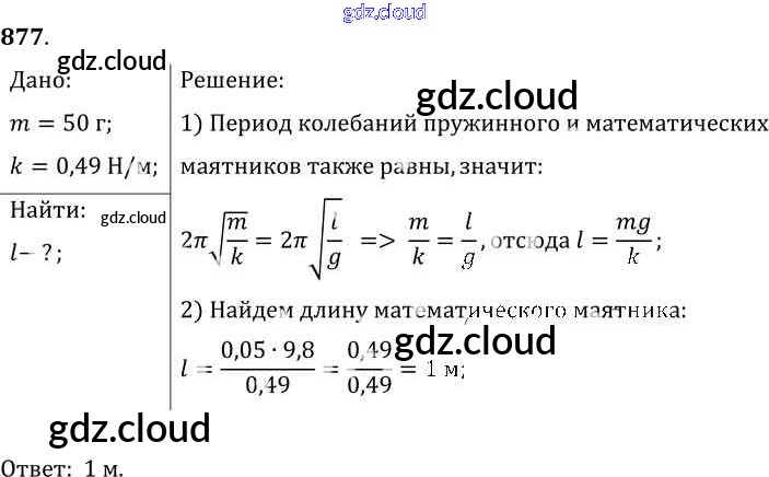 Ответ на задание 877 Сборник задач Физика за 7, 8, 9 (седьмой, восьмой, девятый) класс Лукашик, Иванова 2011