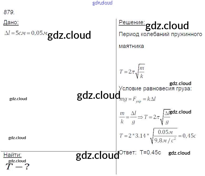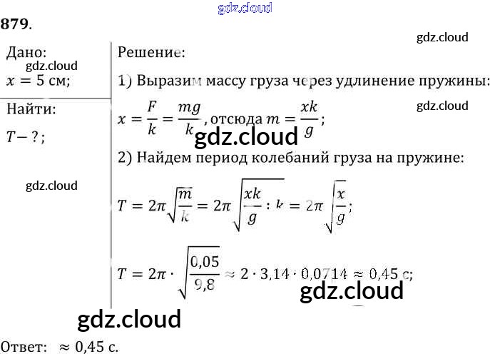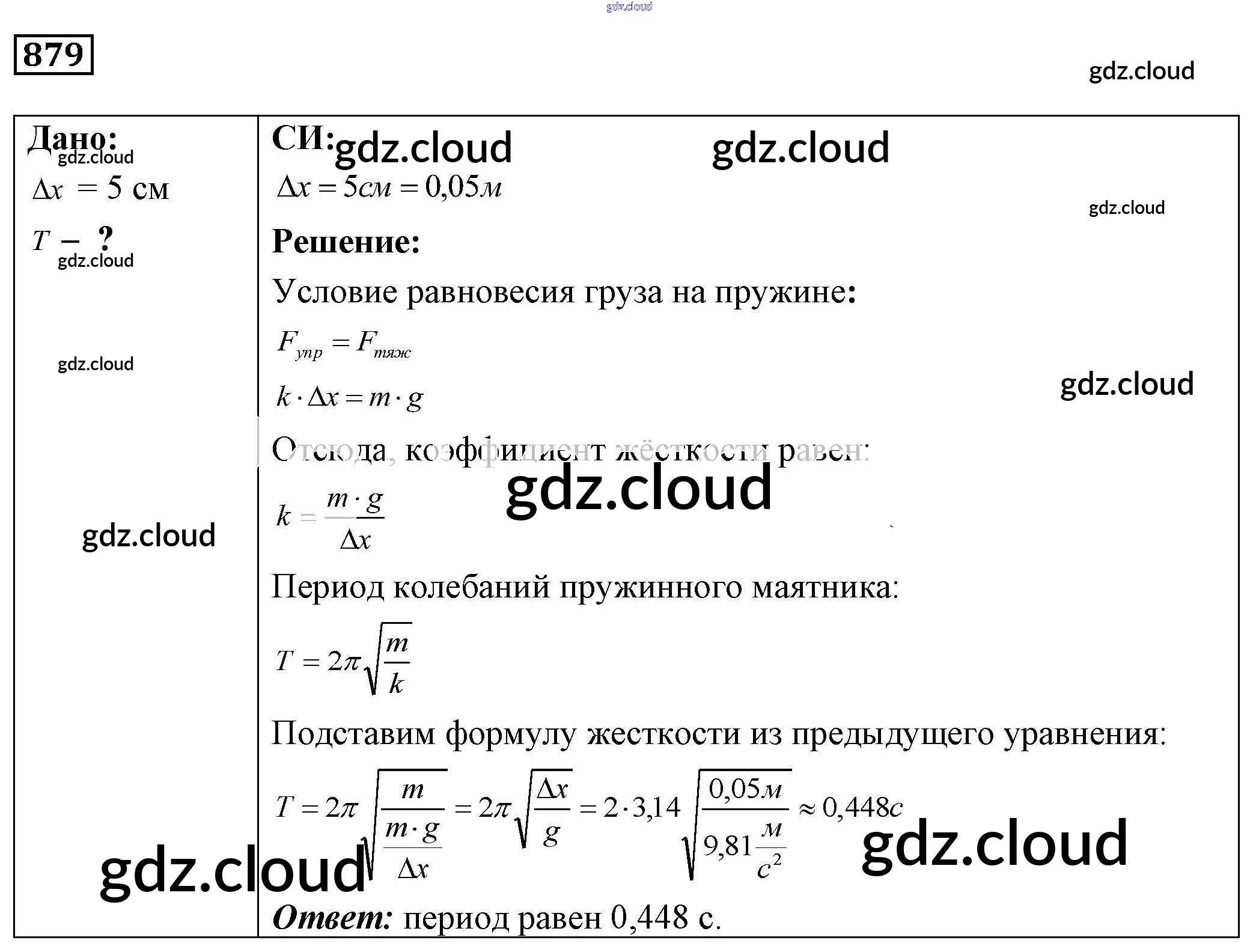 Ответ на задание 879 Сборник задач Физика за 7, 8, 9 (седьмой, восьмой, девятый) класс Лукашик, Иванова 2011