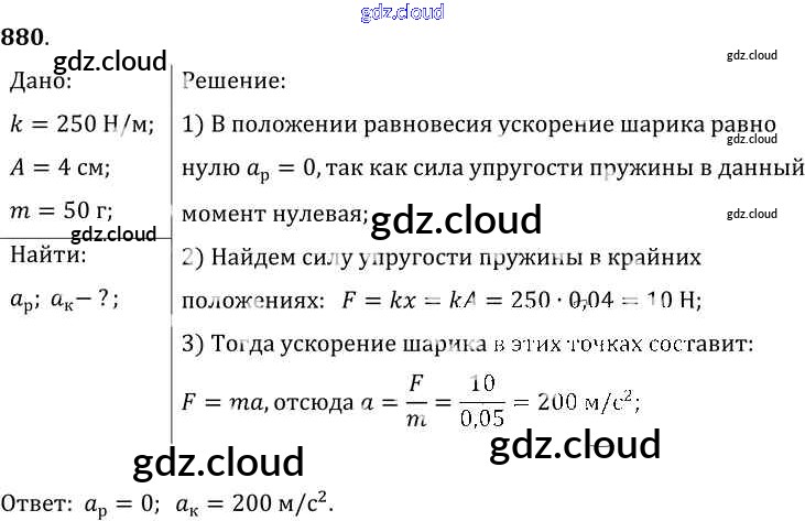 Ответ на задание 880 Сборник задач Физика за 7, 8, 9 (седьмой, восьмой, девятый) класс Лукашик, Иванова 2011