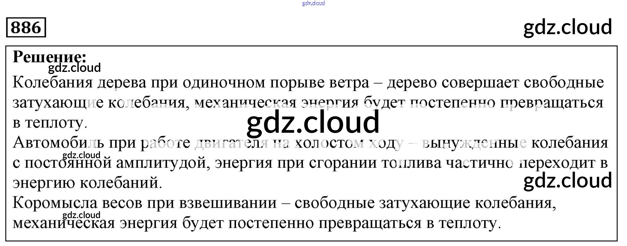 Ответ на задание 886 Сборник задач Физика за 7, 8, 9 (седьмой, восьмой, девятый) класс Лукашик, Иванова 2011