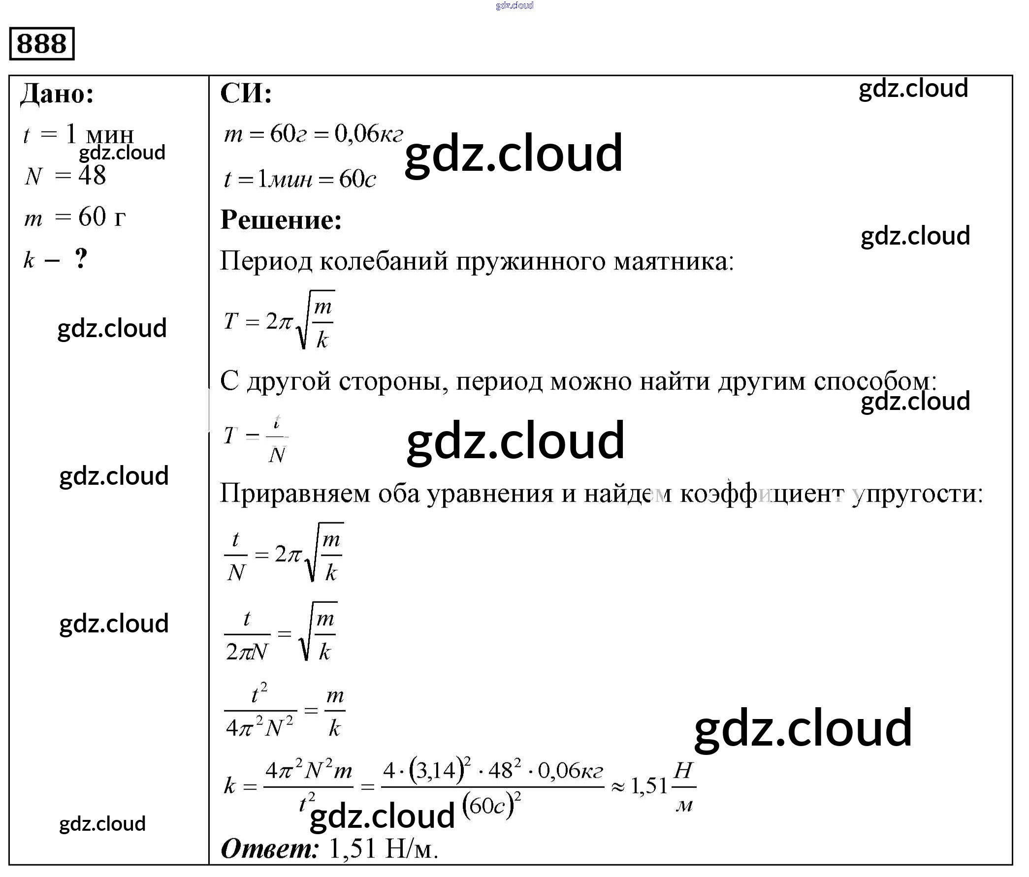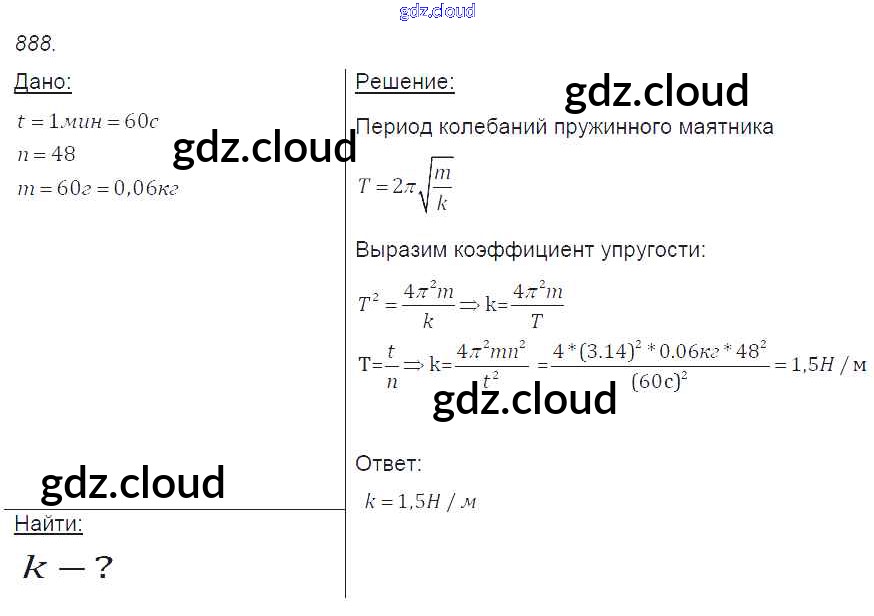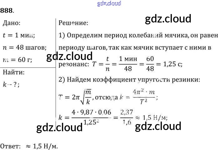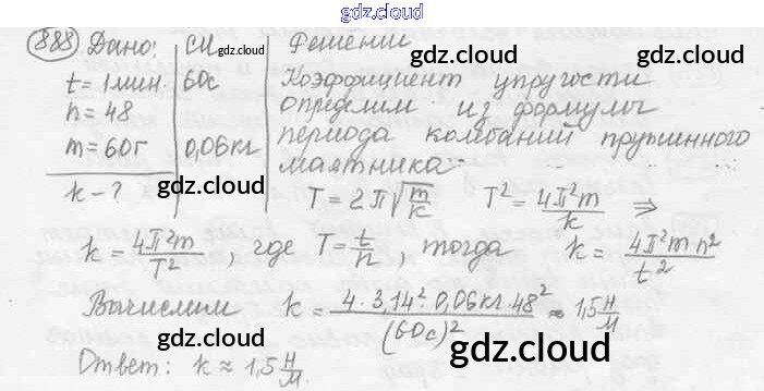 Ответ на задание 888 Сборник задач Физика за 7, 8, 9 (седьмой, восьмой, девятый) класс Лукашик, Иванова 2011