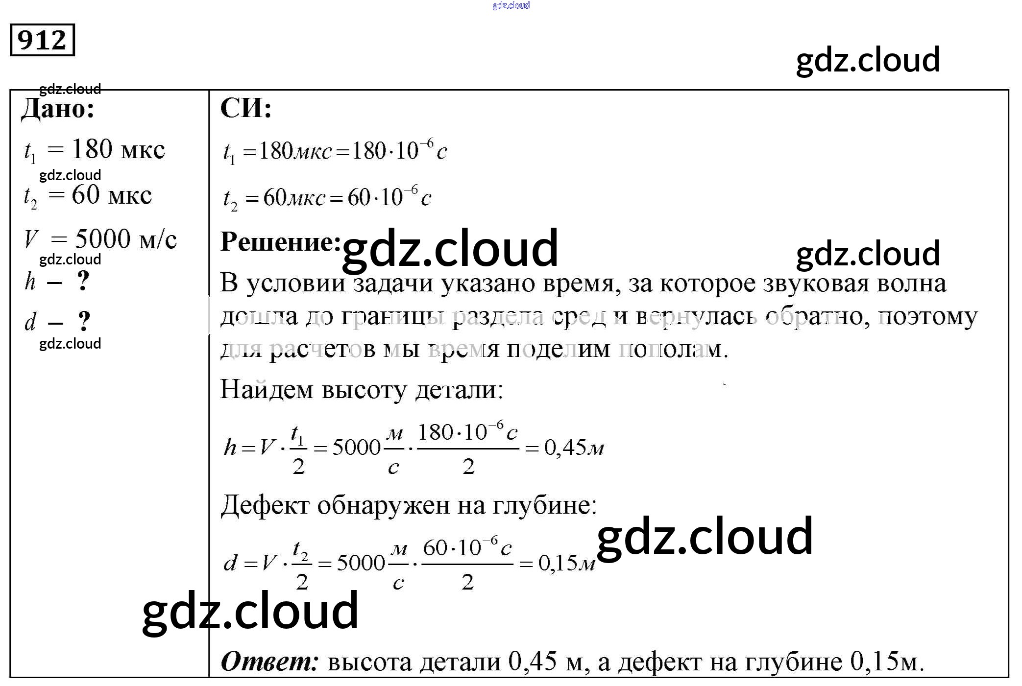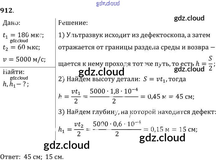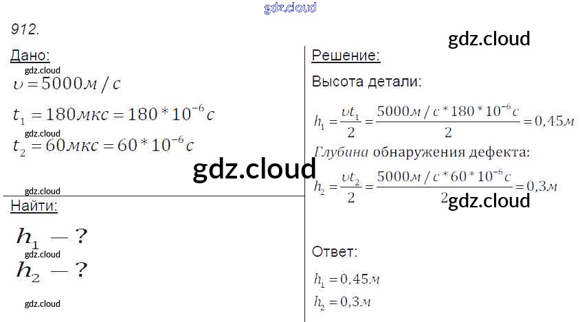 Ответ на задание 912 Сборник задач Физика за 7, 8, 9 (седьмой, восьмой, девятый) класс Лукашик, Иванова 2011