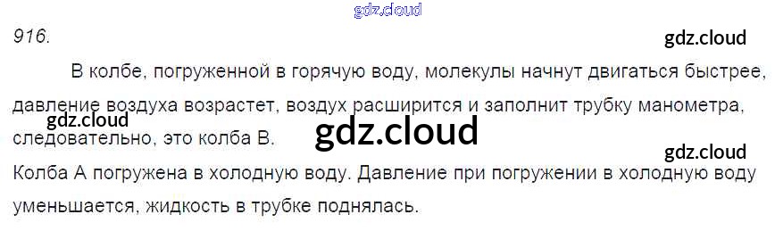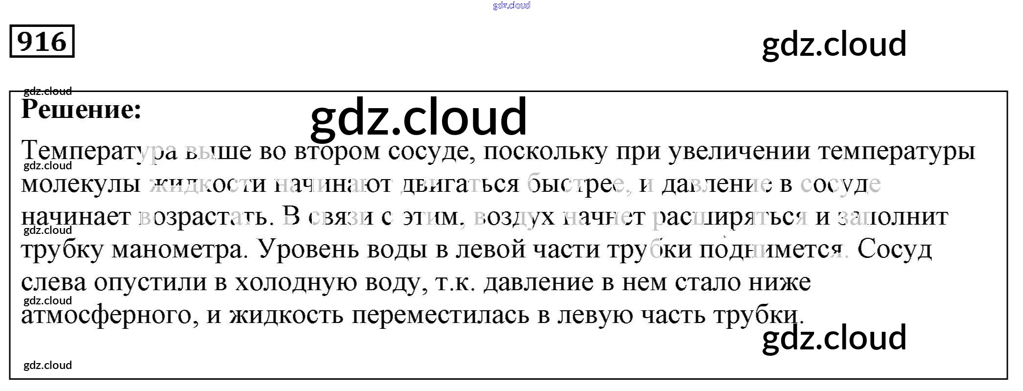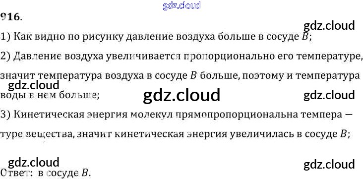 Ответ на задание 916 Сборник задач Физика за 7, 8, 9 (седьмой, восьмой, девятый) класс Лукашик, Иванова 2011