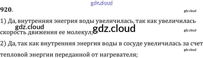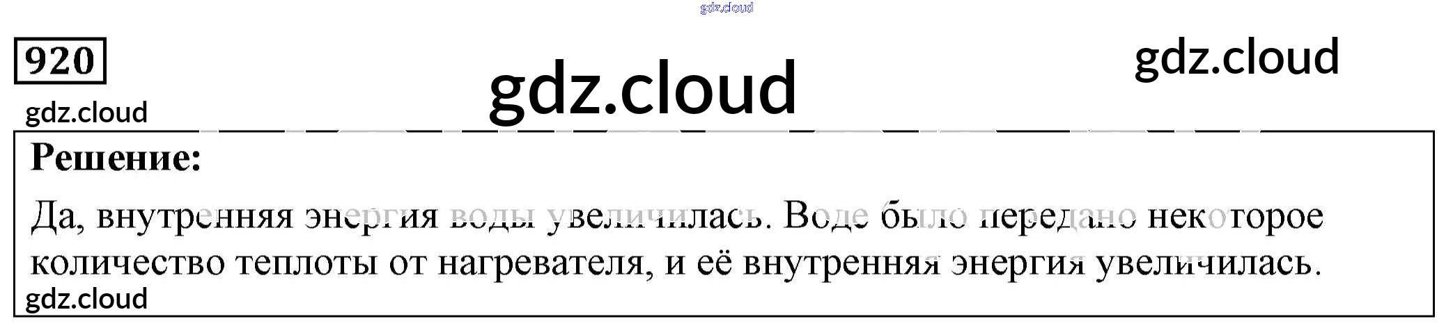 Ответ на задание 920 Сборник задач Физика за 7, 8, 9 (седьмой, восьмой, девятый) класс Лукашик, Иванова 2011