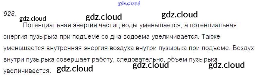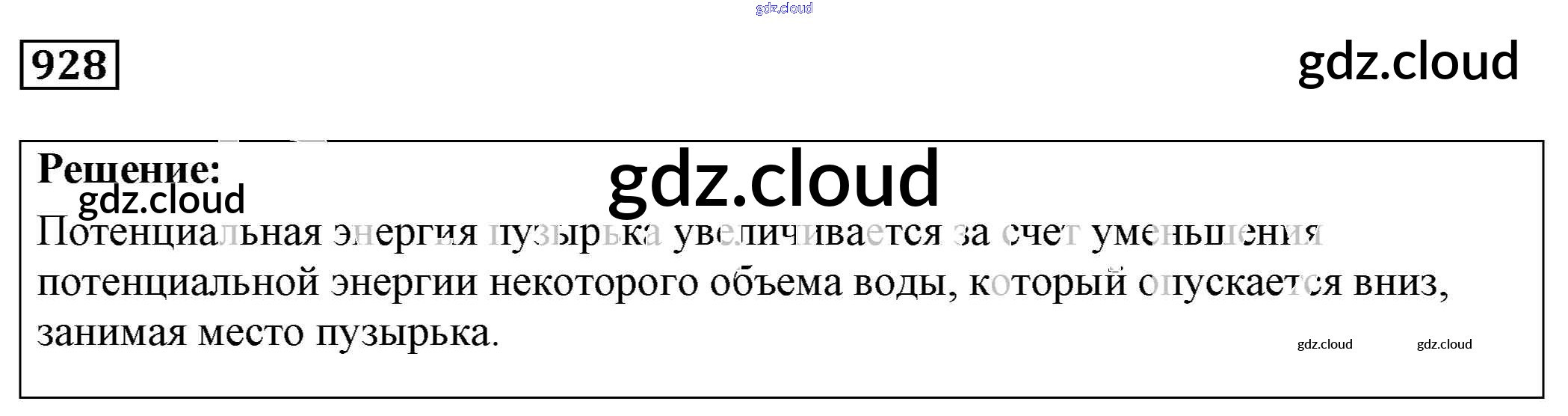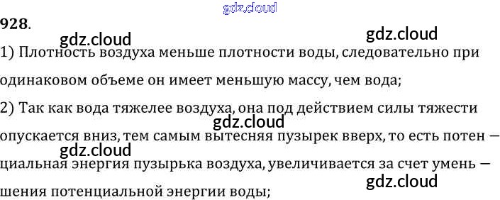 Ответ на задание 928 Сборник задач Физика за 7, 8, 9 (седьмой, восьмой, девятый) класс Лукашик, Иванова 2011