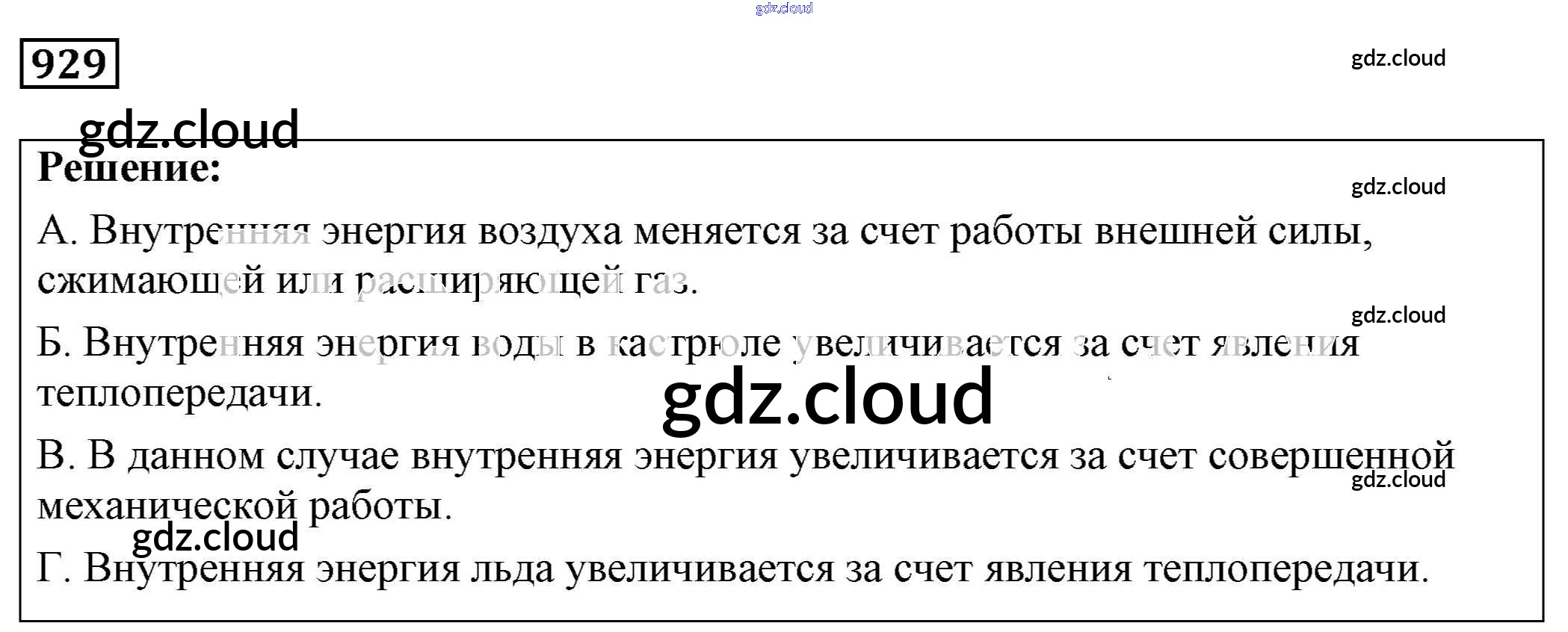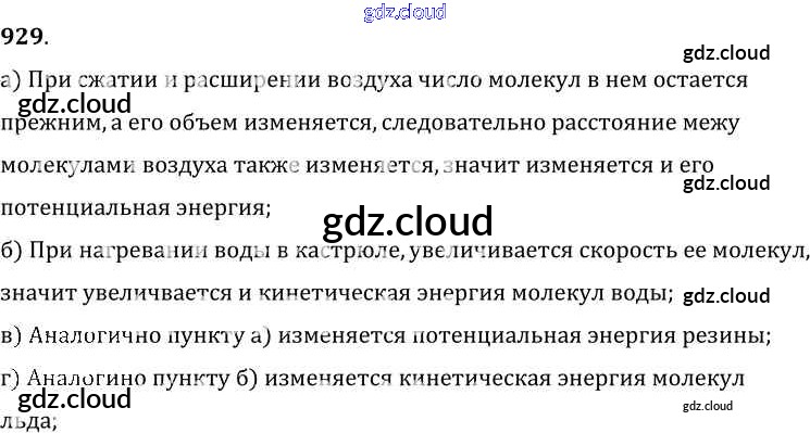 Ответ на задание 929 Сборник задач Физика за 7, 8, 9 (седьмой, восьмой, девятый) класс Лукашик, Иванова 2011