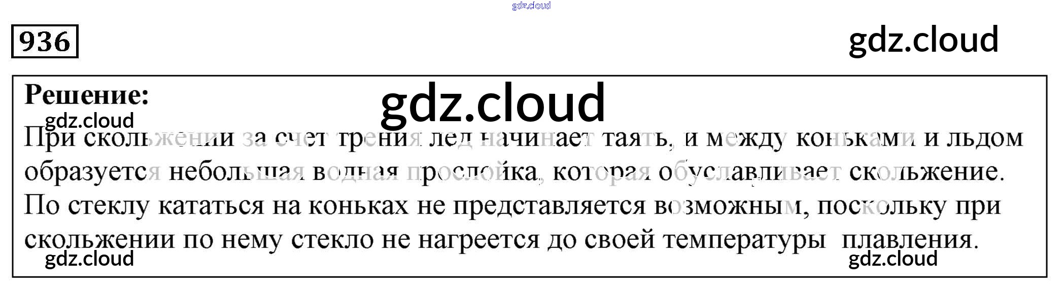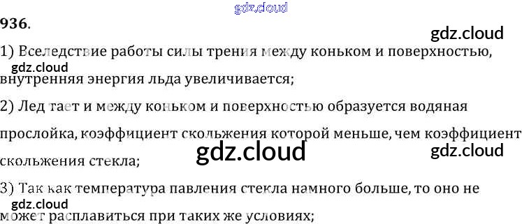 Ответ на задание 936 Сборник задач Физика за 7, 8, 9 (седьмой, восьмой, девятый) класс Лукашик, Иванова 2011