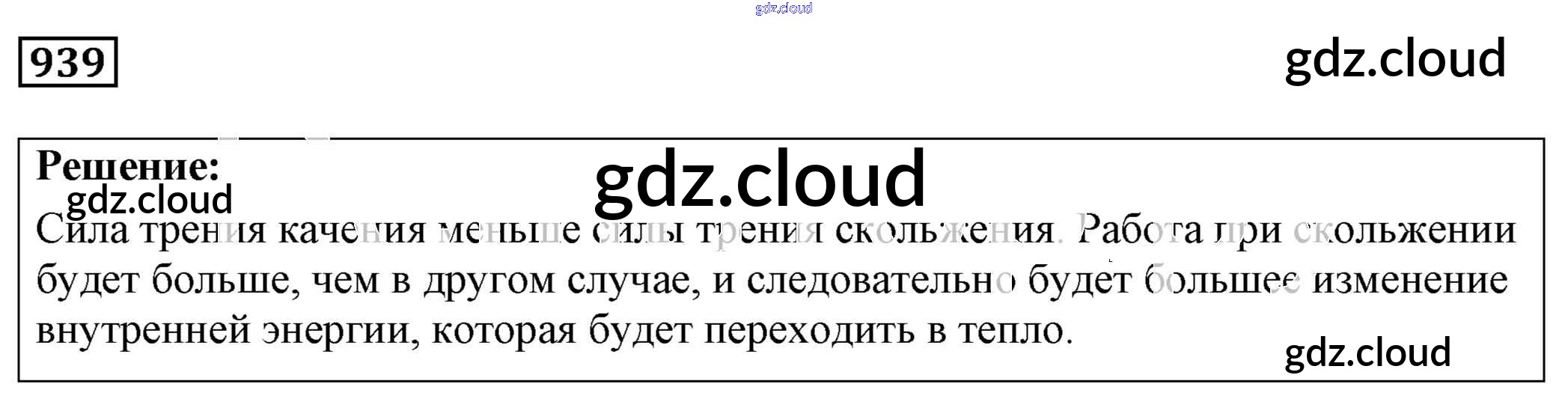 Ответ на задание 939 Сборник задач Физика за 7, 8, 9 (седьмой, восьмой, девятый) класс Лукашик, Иванова 2011