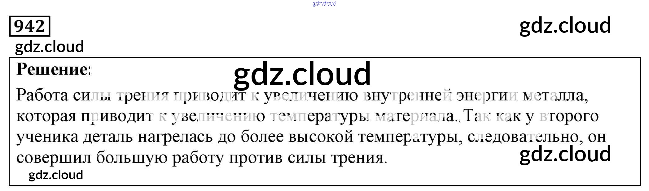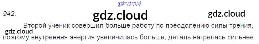 Ответ на задание 942 Сборник задач Физика за 7, 8, 9 (седьмой, восьмой, девятый) класс Лукашик, Иванова 2011