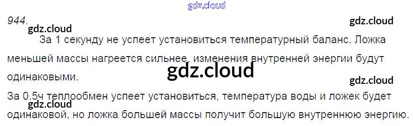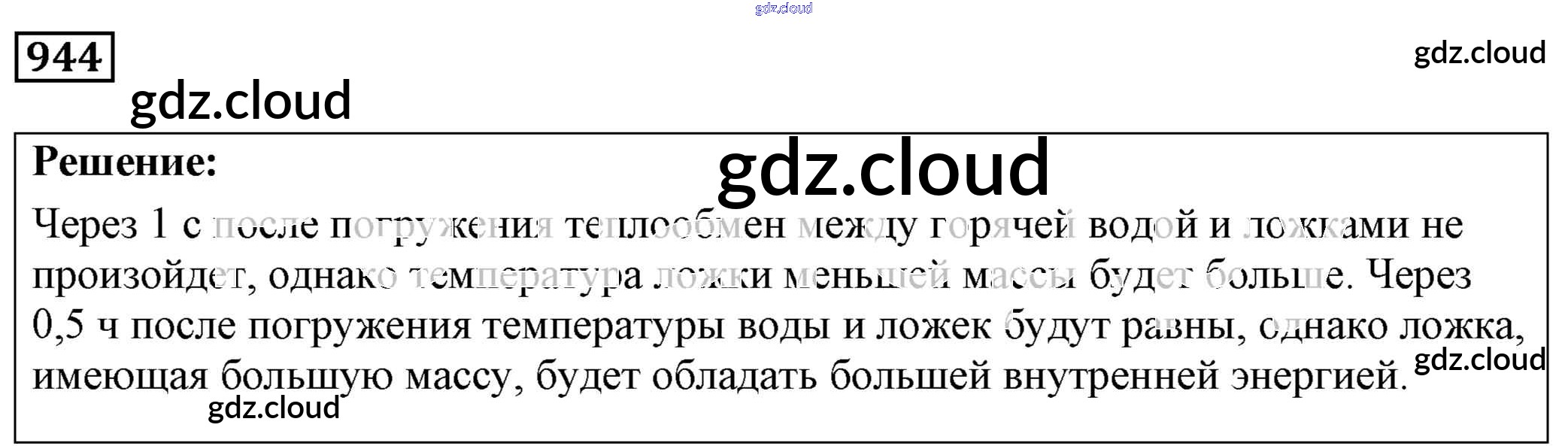 Ответ на задание 944 Сборник задач Физика за 7, 8, 9 (седьмой, восьмой, девятый) класс Лукашик, Иванова 2011