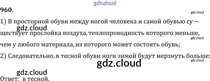 Ответ на задание 960 Сборник задач Физика за 7, 8, 9 (седьмой, восьмой, девятый) класс Лукашик, Иванова 2011