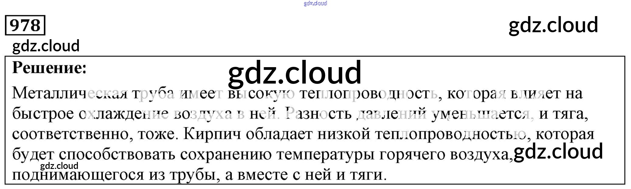 Ответ на задание 978 Сборник задач Физика за 7, 8, 9 (седьмой, восьмой, девятый) класс Лукашик, Иванова 2011