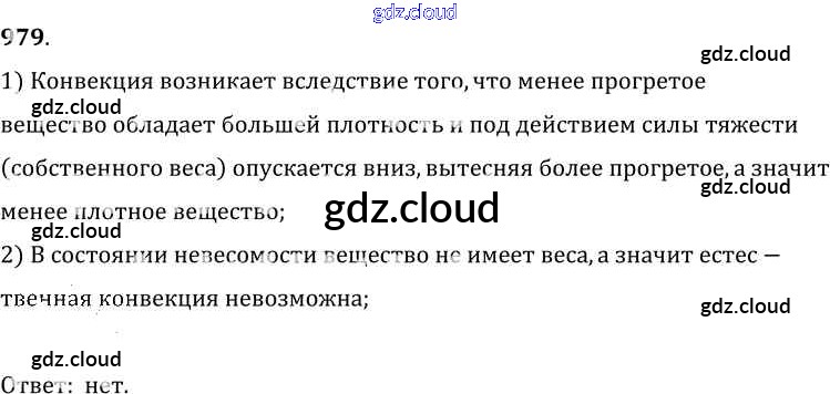 Ответ на задание 979 Сборник задач Физика за 7, 8, 9 (седьмой, восьмой, девятый) класс Лукашик, Иванова 2011