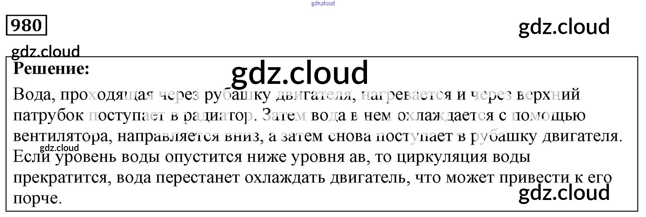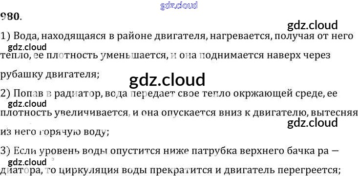 Ответ на задание 980 Сборник задач Физика за 7, 8, 9 (седьмой, восьмой, девятый) класс Лукашик, Иванова 2011