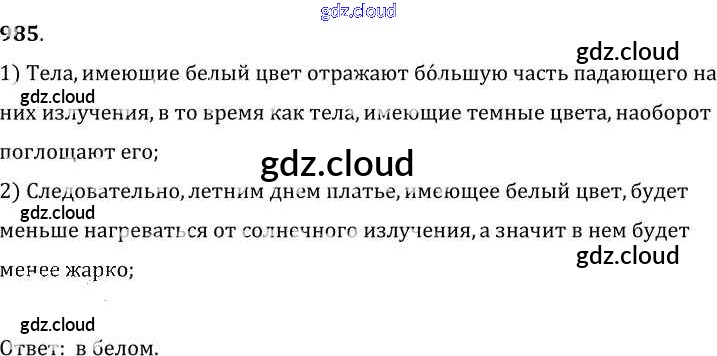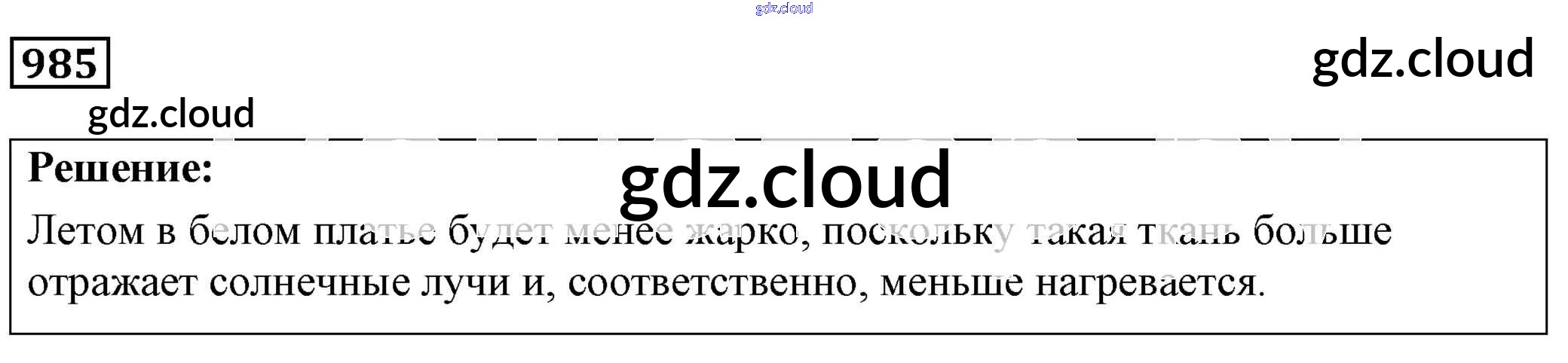 Ответ на задание 985 Сборник задач Физика за 7, 8, 9 (седьмой, восьмой, девятый) класс Лукашик, Иванова 2011