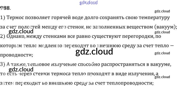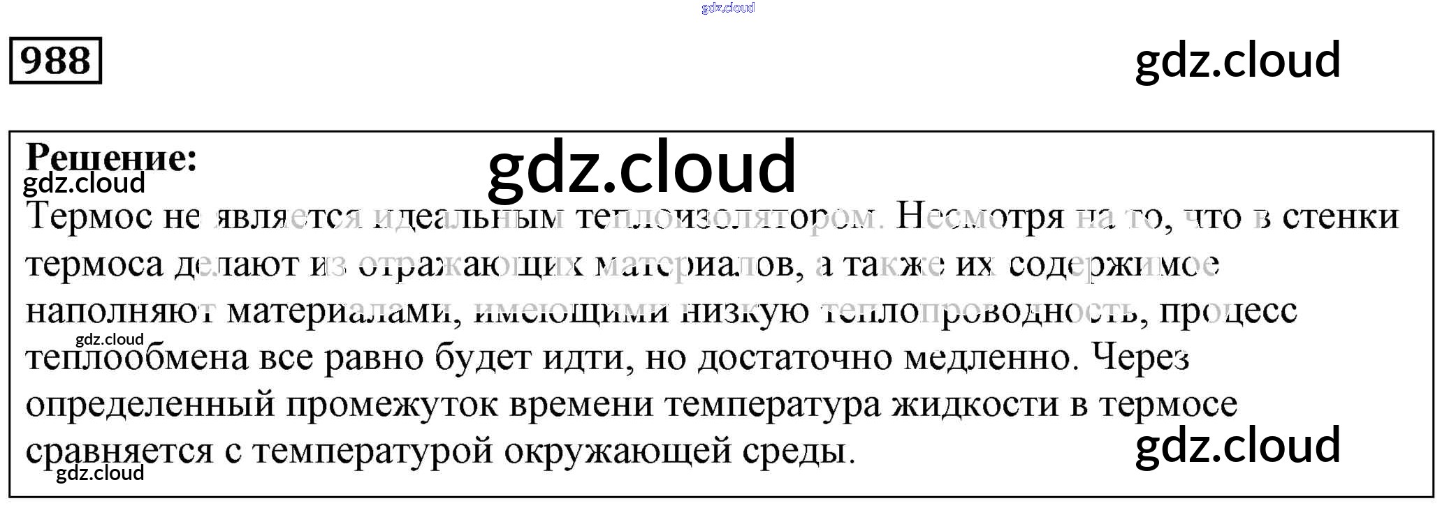 Ответ на задание 988 Сборник задач Физика за 7, 8, 9 (седьмой, восьмой, девятый) класс Лукашик, Иванова 2011