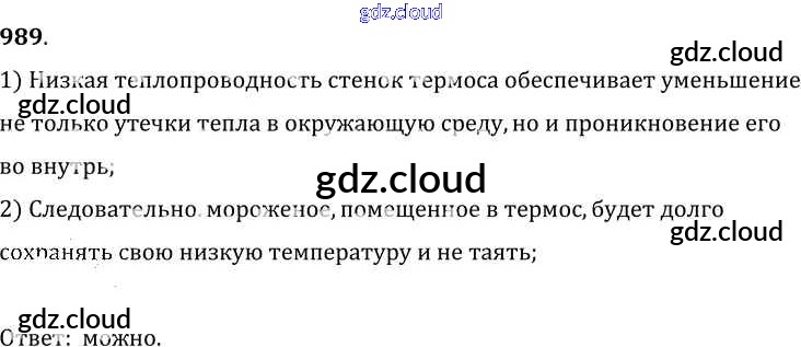 Ответ на задание 989 Сборник задач Физика за 7, 8, 9 (седьмой, восьмой, девятый) класс Лукашик, Иванова 2011
