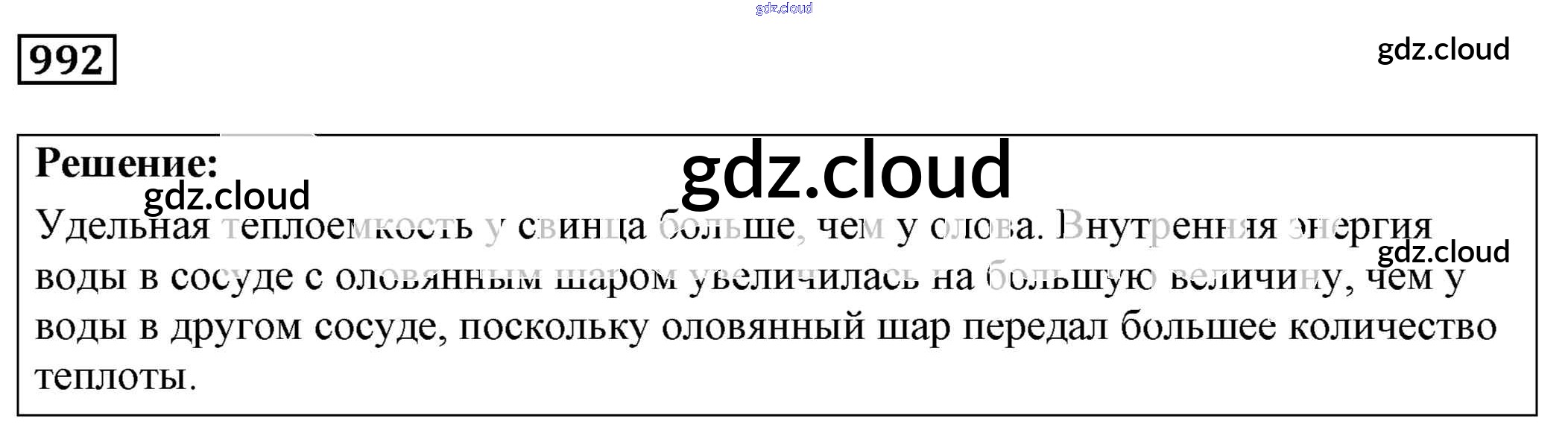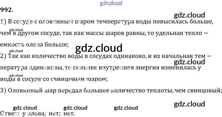 Ответ на задание 992 Сборник задач Физика за 7, 8, 9 (седьмой, восьмой, девятый) класс Лукашик, Иванова 2011